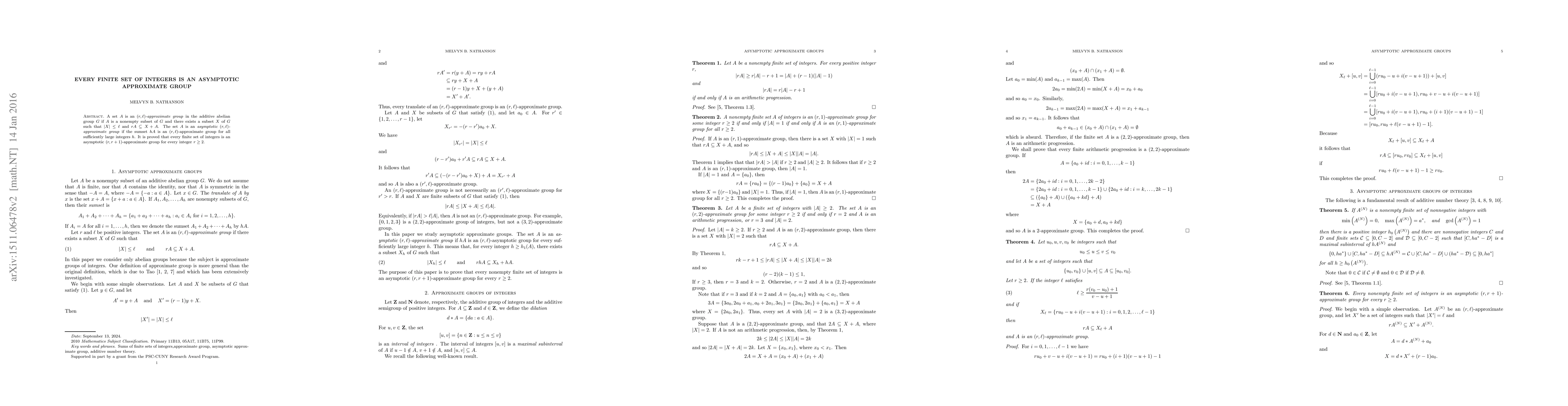 This paper proves that any finite set of integers is an asymptotic $(r,r+1)$-approximate group for any integer $r \geq 2$, establishing a fundamental property of finite sets in the context of additive group theory. The concept of asymptotic approximate groups extends the notion of approximate groups to large-scale behavior.