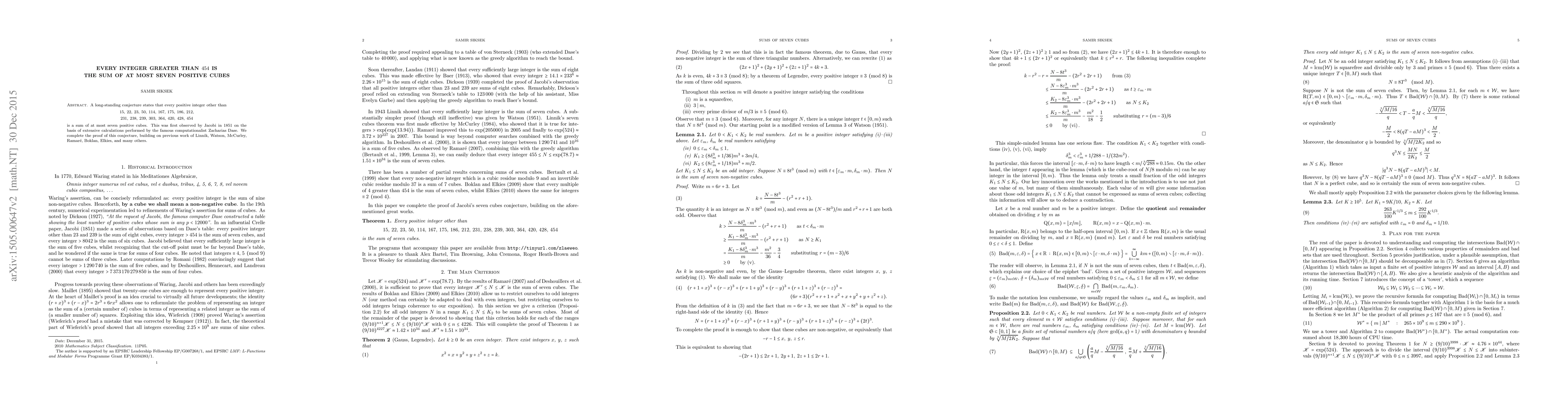A long-standing conjecture states that every positive integer other than 15, 22, 23, 50, 114, 167, 175, 186, 212, 231, 238, 239, 303, 364, 420, 428, 454 is a sum of at most seven positive cubes. This was first observed by Jacobi in 1851 on the basis of extensive calculations performed by the famous computationalist Zacharias Dase. We complete the proof of this conjecture, building on previous work of Linnik, Watson, McCurley, Ramar\'e, Boklan, Elkies, and many others.