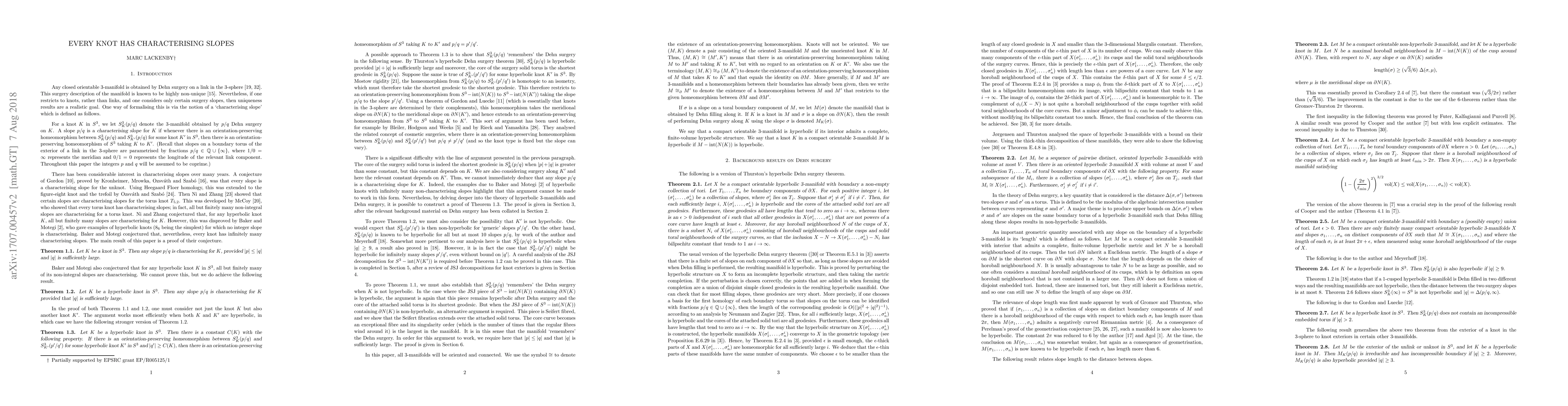 This paper confirms a conjecture by Baker and Motegi, demonstrating that every knot in the 3-sphere has infinitely many characterising slopes, meaning specific slopes that uniquely identify the knot up to isotopy. It also shows that for sufficiently large |q|, any slope p/q is characterising if |p| ≤ |q|.