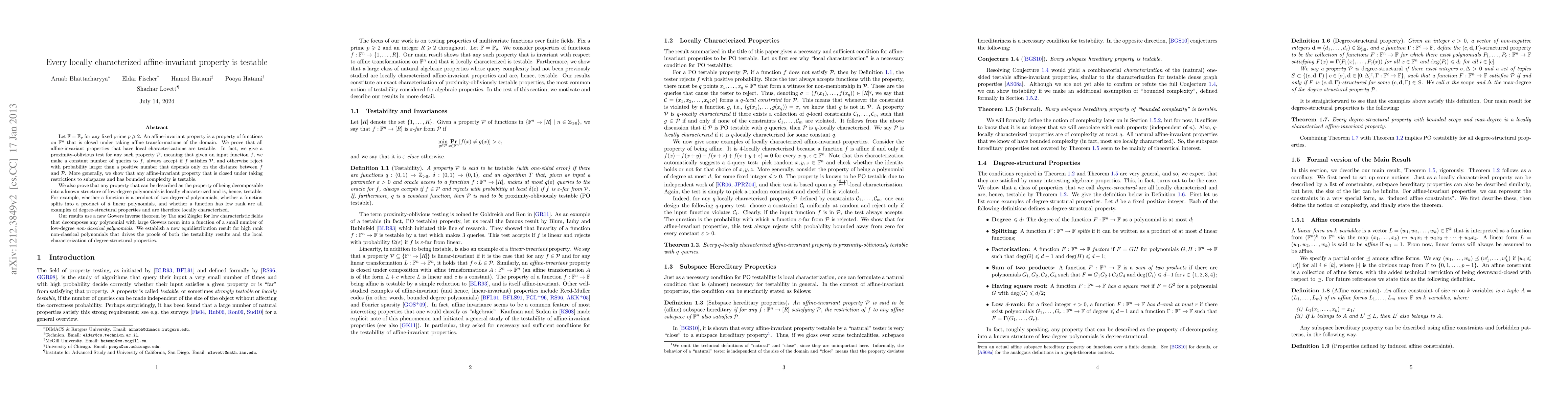 Let F = F_p for any fixed prime p >= 2. An affine-invariant property is a property of functions on F^n that is closed under taking affine transformations of the domain. We prove that all affine-invariant property having local characterizations are testable. In fact, we show a proximity-oblivious test for any such property P, meaning that there is a test that, given an input function f, makes a constant number of queries to f, always accepts if f satisfies P, and rejects with positive probability if the distance between f and P is nonzero. More generally, we show that any affine-invariant property that is closed under taking restrictions to subspaces and has bounded complexity is testable. We also prove that any property that can be described as the property of decomposing into a known structure of low-degree polynomials is locally characterized and is, hence, testable. For example, whether a function is a product of two degree-d polynomials, whether a function splits into a product of d linear polynomials, and whether a function has low rank are all examples of degree-structural properties and are therefore locally characterized. Our results depend on a new Gowers inverse theorem by Tao and Ziegler for low characteristic fields that decomposes any polynomial with large Gowers norm into a function of low-degree non-classical polynomials. We establish a new equidistribution result for high rank non-classical polynomials that drives the proofs of both the testability results and the local characterization of degree-structural properties.