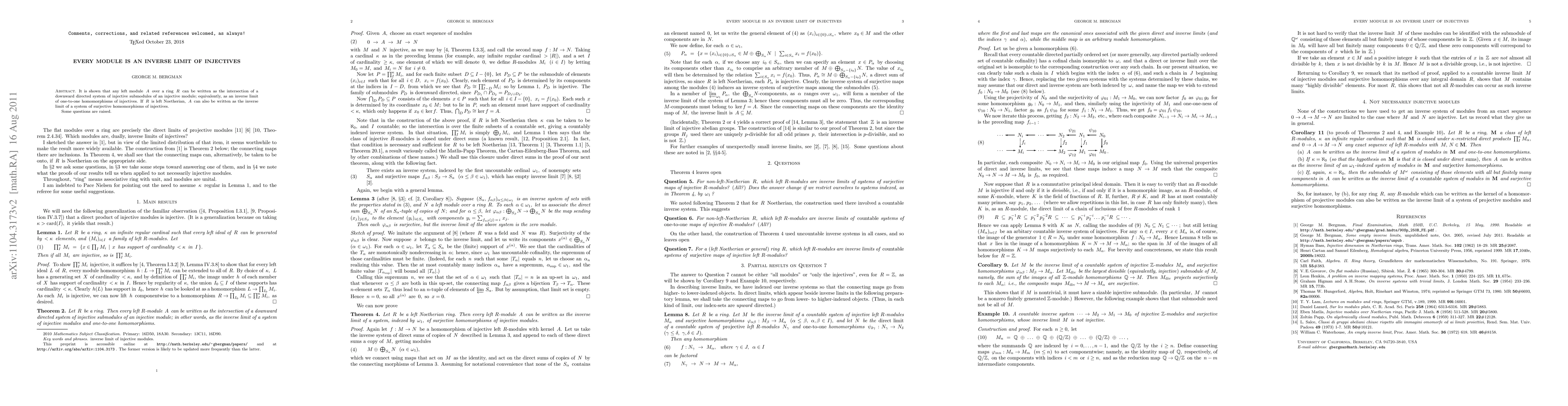 It is shown that any left module A over a ring R can be written as the intersection of a downward directed system of injective submodules of an injective module; equivalently, as an inverse limit of one-to-one homomorphisms of injectives. If R is left Noetherian, A can also be written as the inverse limit of a system of surjective homomorphisms of injectives. Some questions are raised.