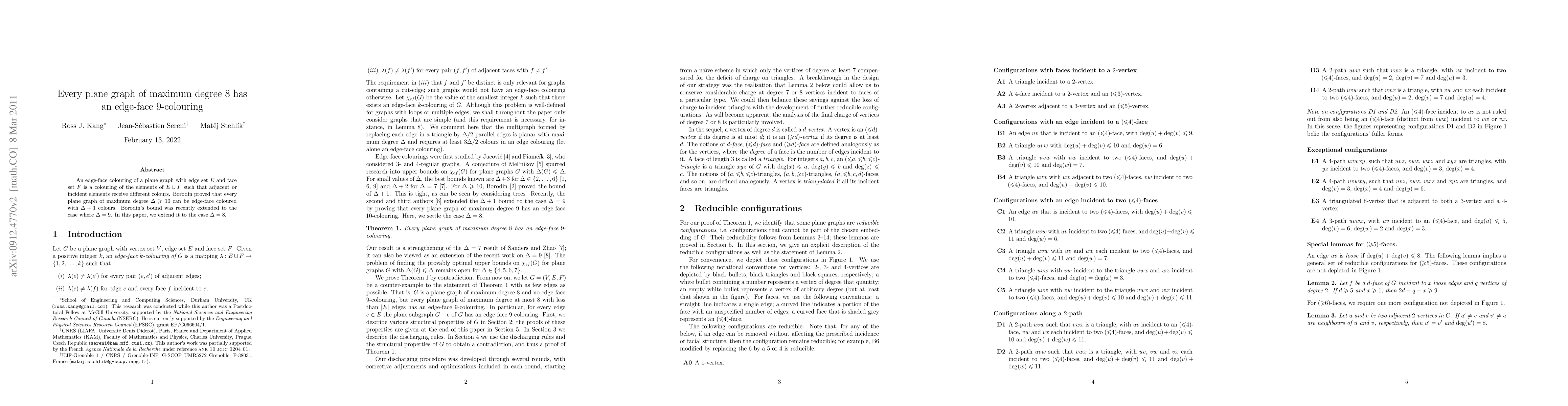 This paper demonstrates that every plane graph with a maximum degree of 8 can be edge-face coloured using 9 distinct colours, extending previous results that applied to graphs with maximum degree 9 or higher. This advancement refines the edge-face colouring bounds for plane graphs.