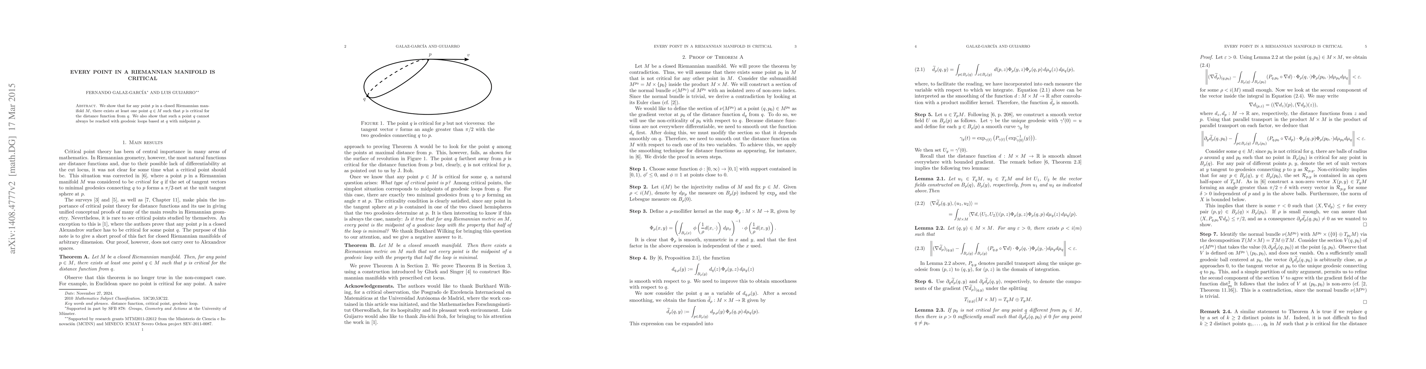 We show that for any point $p$ in a closed Riemannian manifold $M$, there exists at least one point $q\in M$ such that $p$ is critical for the distance function from $q$. We also show that such a point $q$ cannot always be reached with geodesic loops based at $q$ with midpoint $p$.