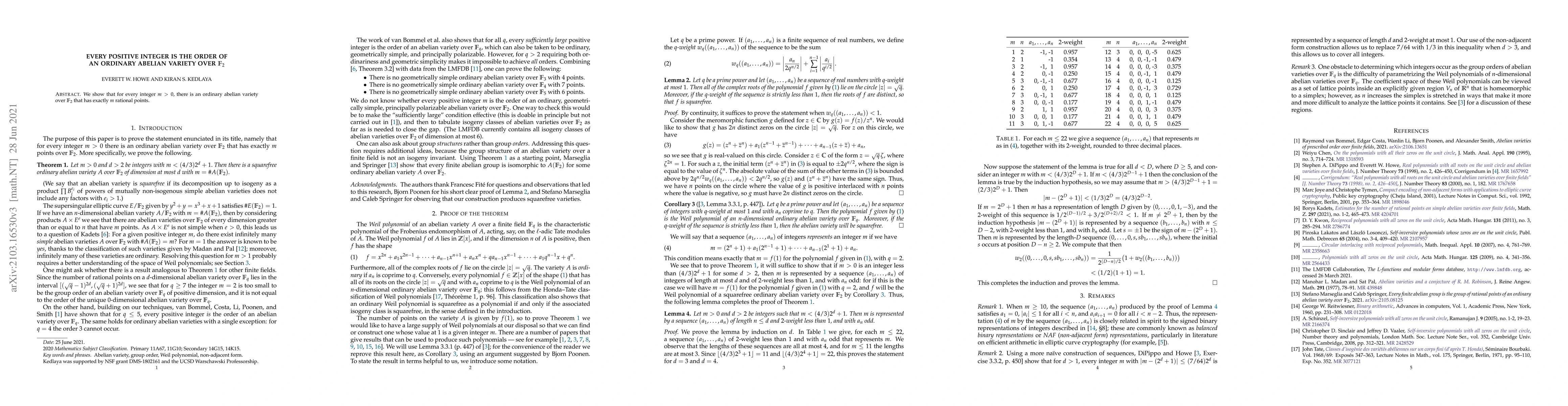 Summary: This paper demonstrates that for every positive integer $m$, there exists an ordinary abelian variety over ${\mathbb F}_2$ with precisely $m$ rational points. This establishes a correspondence between positive integers and the number of rational points on such varieties.
