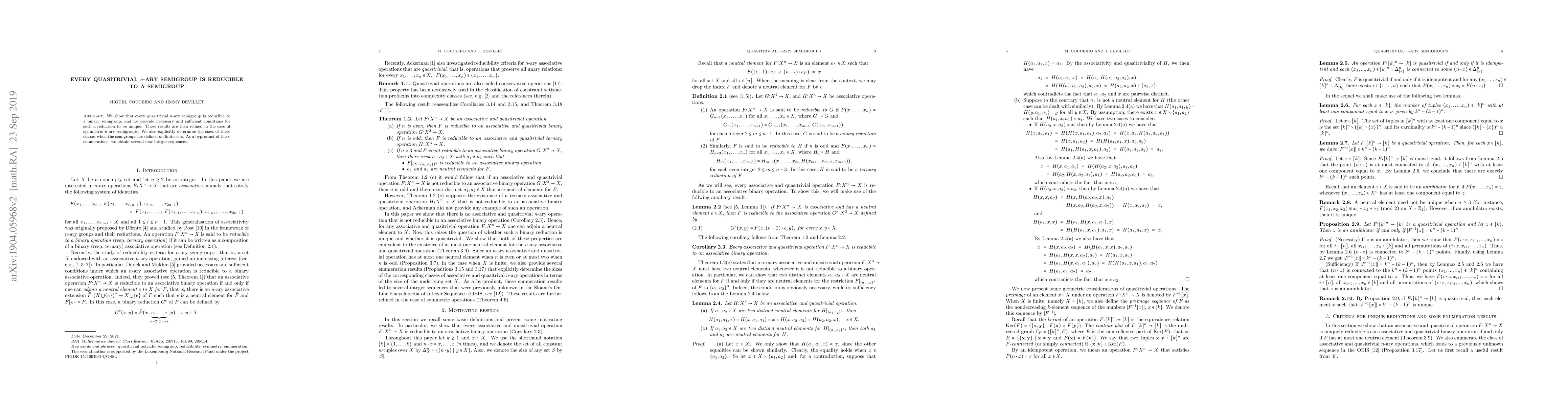 This paper demonstrates that any quasitrivial n-ary semigroup can be reduced to a binary semigroup, establishing conditions for a unique reduction, especially for symmetric n-ary semigroups. It also enumerates these classes for finite sets, resulting in new integer sequences.
