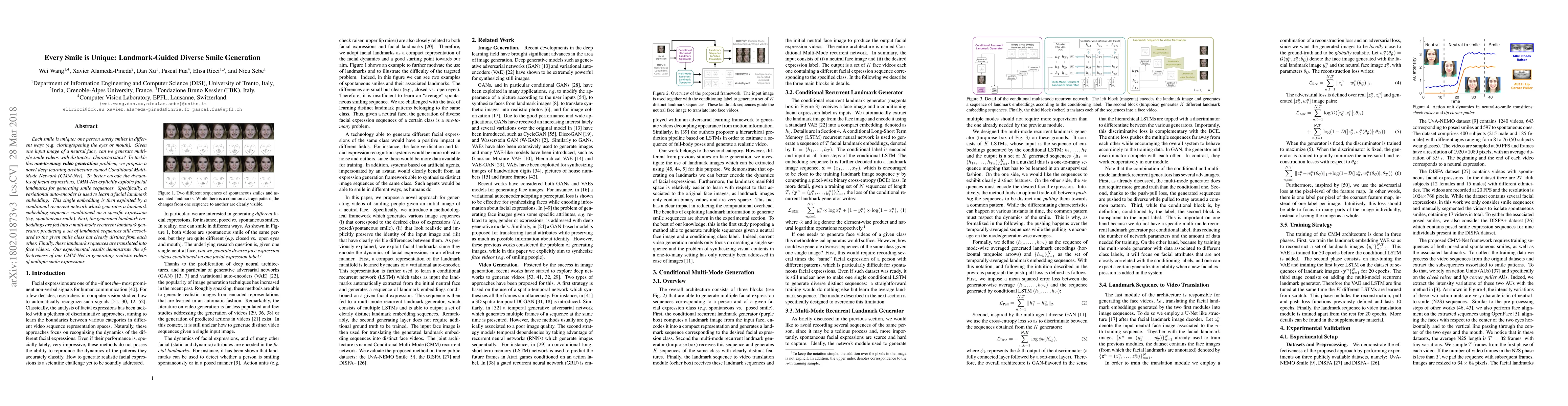 Researchers developed a deep learning model called CMM-Net to generate unique smile videos from a single neutral face image. The model uses facial landmarks to create distinctive smile sequences that are clearly different from each other.