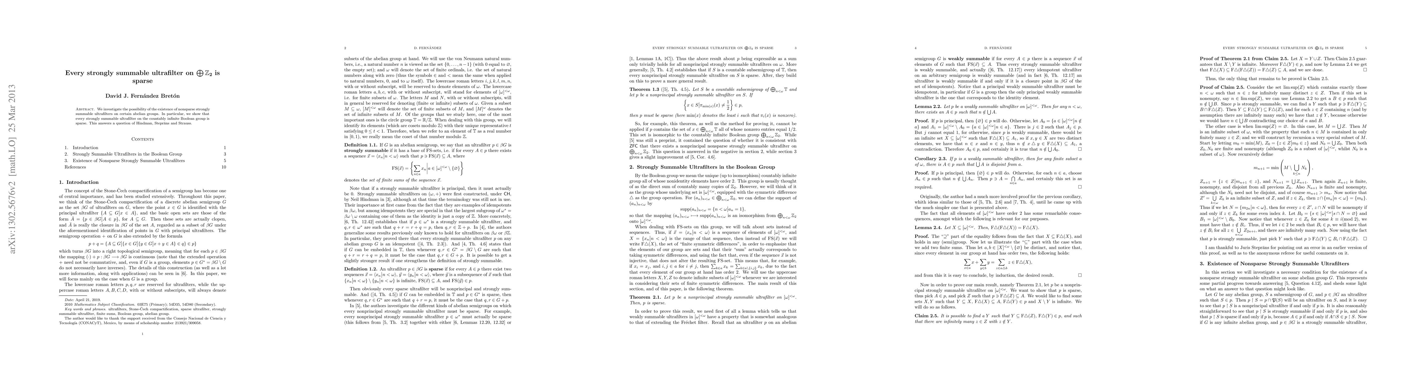 This paper demonstrates that every strongly summable ultrafilter on the countably infinite Boolean group $\bigoplus\mathbb Z_2$ is sparse, addressing a question posed by Hindman, Steprāns, and Strauss. The result rules out the existence of nonsparse strongly summable ultrafilters in this context.