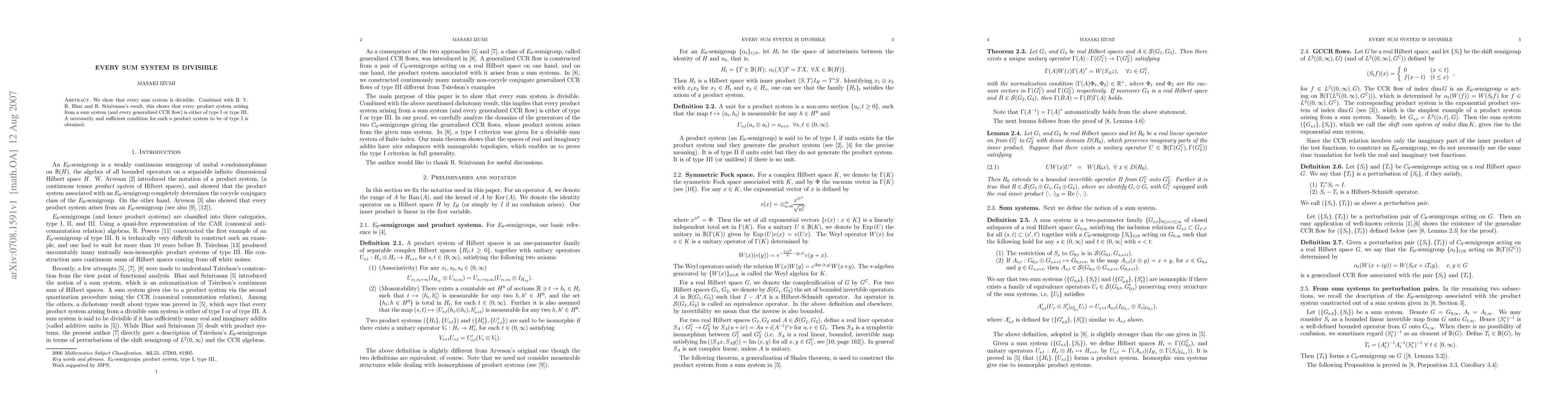Researchers prove that every sum system is divisible, with implications for product systems and flow systems, revealing a condition for determining their type.