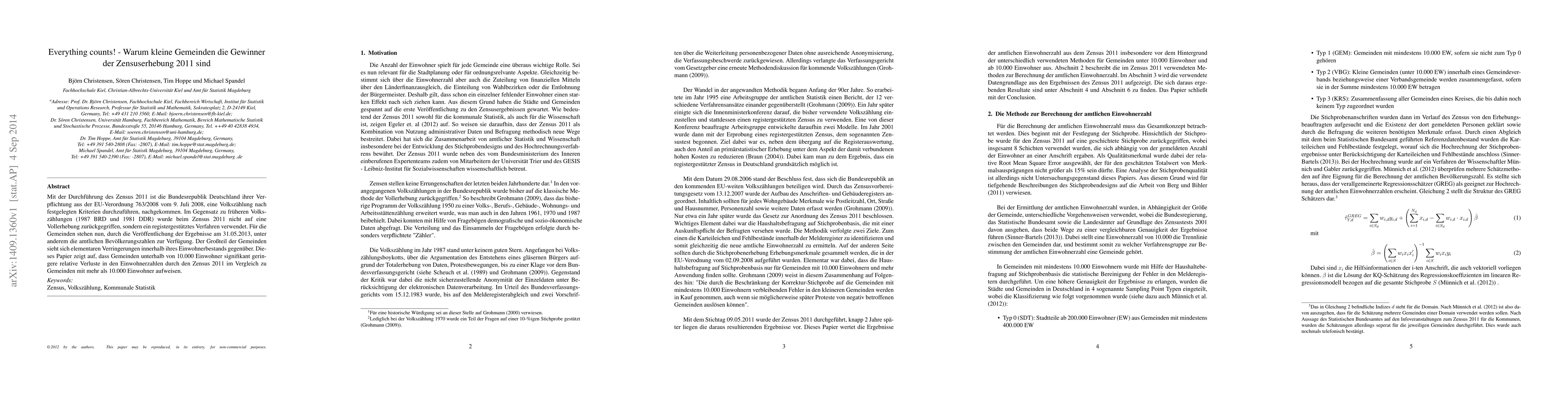 The population and housing census 2011 was an EU-wide census in all EU member states. In Germany, the basis was a largely register-based method. In this paper, it is shown that communities with less than 10.000 inhabitants have significantly less relative losses in the number of inhabitants compared to communities with more than 10.000 inhabitants.