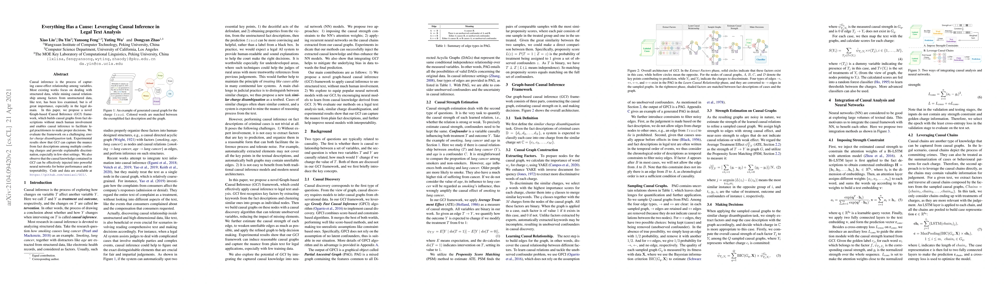 This paper proposes a Graph-based Causal Inference (GCI) framework to extract cause-effect relationships from legal text, facilitating decision-making in the legal domain. Experimental results demonstrate GCI's effectiveness in disambiguation tasks and its ability to enhance neural networks' performance and interpretability.