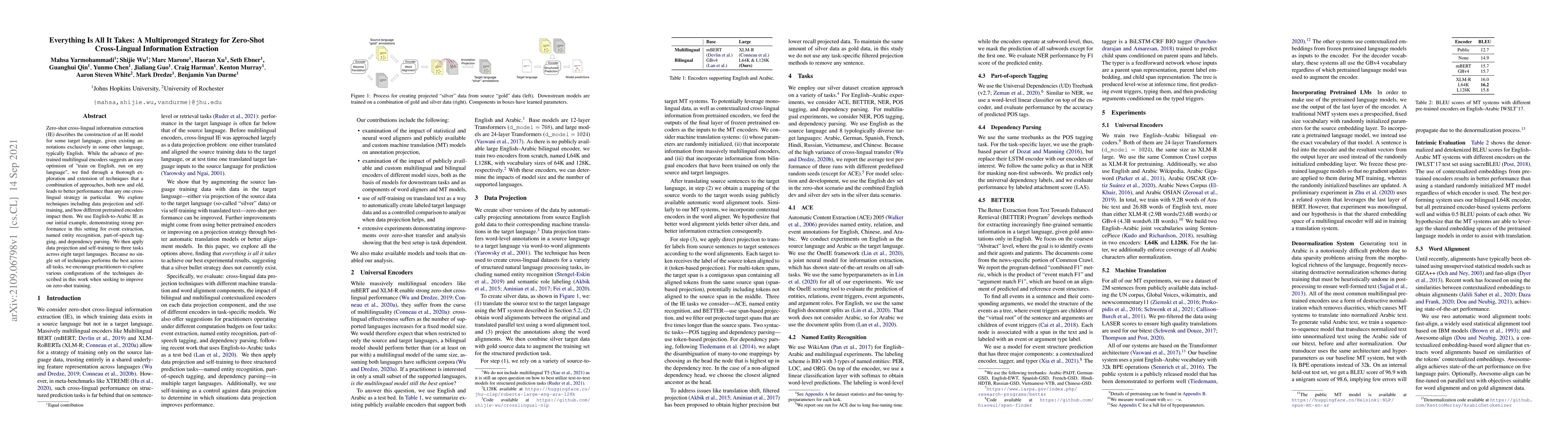 This paper proposes a multipronged strategy combining various techniques like data projection and self-training to enhance zero-shot cross-lingual information extraction. It demonstrates superior performance across multiple languages and tasks, advocating for the use of diverse configurations to achieve the best results.
