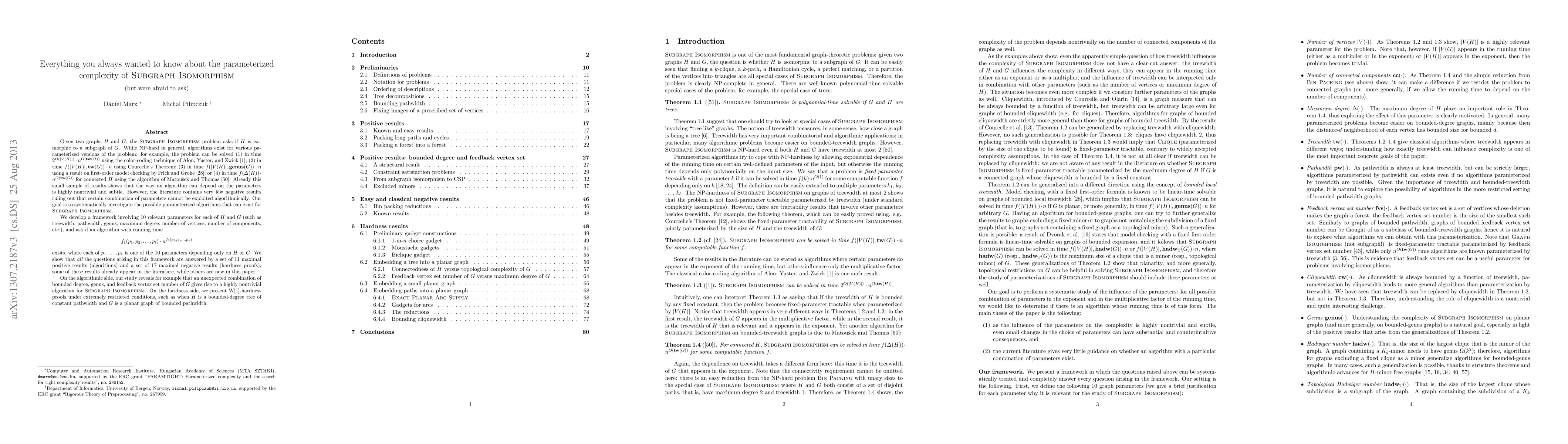 Given two graphs $H$ and $G$, the Subgraph Isomorphism problem asks if $H$ is isomorphic to a subgraph of $G$. While NP-hard in general, algorithms exist for various parameterized versions of the problem: for example, the problem can be solved (1) in time $2^{O(|V(H)|)}\cdot n^{O(\tw(H))}$ using the color-coding technique of Alon, Yuster, and Zwick; (2) in time $f(|V(H)|,\tw(G))\cdot n$ using Courcelle's Theorem; (3) in time $f(|V(H)|,\genus(G))\cdot n$ using a result on first-order model checking by Frick and Grohe; or (4) in time $f(\maxdeg(H))\cdot n^{O(\tw(G)})$ for connected $H$ using the algorithm of Matou\v{s}ek and Thomas. Already this small sample of results shows that the way an algorithm can depend on the parameters is highly nontrivial and subtle. We develop a framework involving 10 relevant parameters for each of $H$ and $G$ (such as treewidth, pathwidth, genus, maximum degree, number of vertices, number of components, etc.), and ask if an algorithm with running time \[ f_1(p_1,p_2,..., p_\ell)\cdot n^{f_2(p_{\ell+1},..., p_k)} \] exist, where each of $p_1,..., p_k$ is one of the 10 parameters depending only on $H$ or $G$. We show that {\em all} the questions arising in this framework are answered by a set of 11 maximal positive results (algorithms) and a set of 17 maximal negative results (hardness proofs); some of these results already appear in the literature, while others are new in this paper. On the algorithmic side, our study reveals for example that an unexpected combination of bounded degree, genus, and feedback vertex set number of $G$ gives rise to a highly nontrivial algorithm for Subgraph Isomorphism. On the hardness side, we present W[1]-hardness proofs under extremely restricted conditions, such as when $H$ is a bounded-degree tree of constant pathwidth and $G$ is a planar graph of bounded pathwidth.