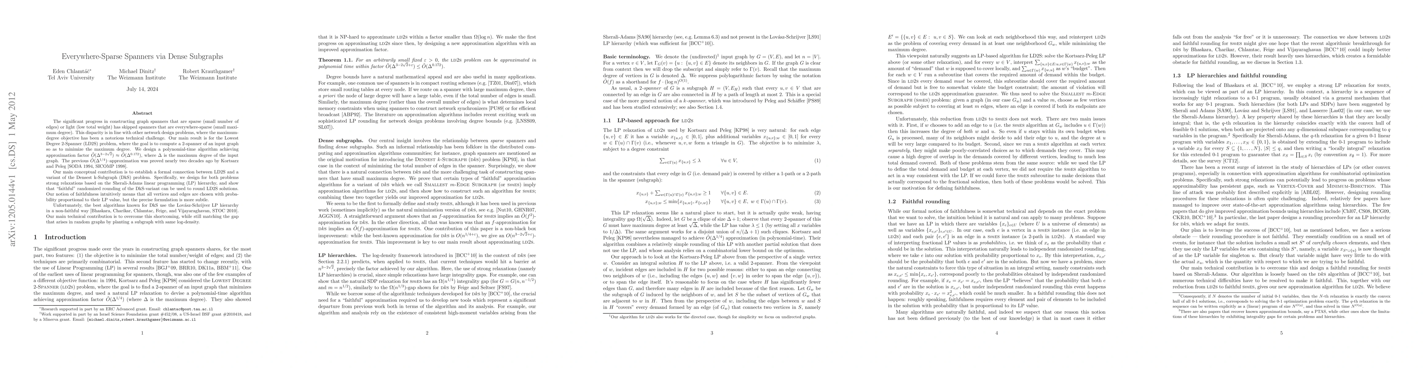 The significant progress in constructing graph spanners that are sparse (small number of edges) or light (low total weight) has skipped spanners that are everywhere-sparse (small maximum degree). This disparity is in line with other network design problems, where the maximum-degree objective has been a notorious technical challenge. Our main result is for the Lowest Degree 2-Spanner (LD2S) problem, where the goal is to compute a 2-spanner of an input graph so as to minimize the maximum degree. We design a polynomial-time algorithm achieving approximation factor $\tilde O(\Delta^{3-2\sqrt{2}}) \approx \tilde O(\Delta^{0.172})$, where $\Delta$ is the maximum degree of the input graph. The previous $\tilde O(\Delta^{1/4})$ -approximation was proved nearly two decades ago by Kortsarz and Peleg [SODA 1994, SICOMP 1998]. Our main conceptual contribution is to establish a formal connection between LD2S and a variant of the Densest k-Subgraph (DkS) problem. Specifically, we design for both problems strong relaxations based on the Sherali-Adams linear programming (LP) hierarchy, and show that "faithful" randomized rounding of the DkS-variant can be used to round LD2S solutions. Our notion of faithfulness intuitively means that all vertices and edges are chosen with probability proportional to their LP value, but the precise formulation is more subtle. Unfortunately, the best algorithms known for DkS use the Lov\'asz-Schrijver LP hierarchy in a non-faithful way [Bhaskara, Charikar, Chlamtac, Feige, and Vijayaraghavan, STOC 2010]. Our main technical contribution is to overcome this shortcoming, while still matching the gap that arises in random graphs by planting a subgraph with same log-density.