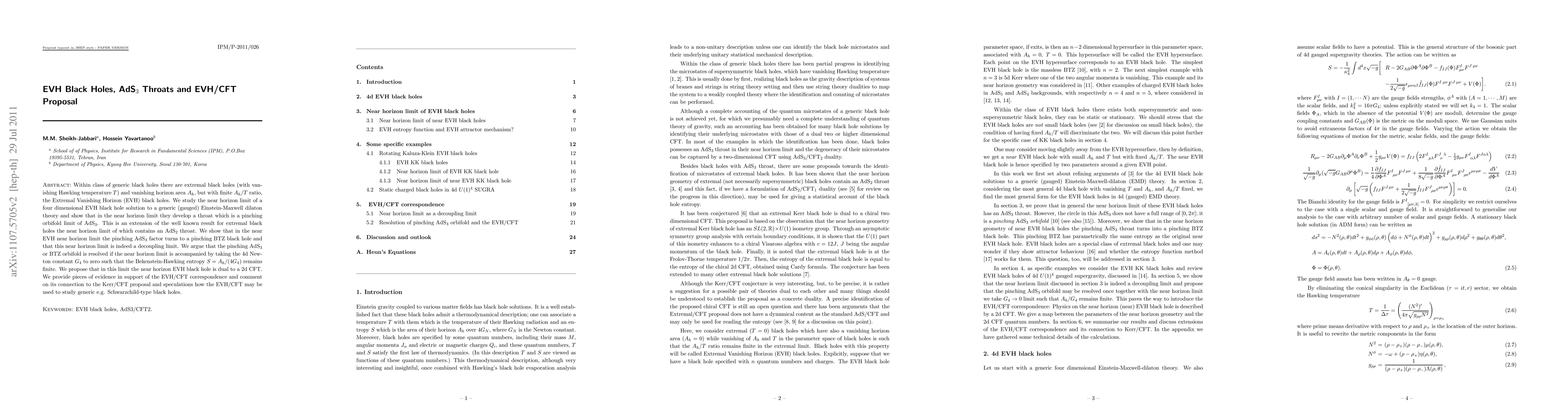 This paper studies extremal vanishing horizon (EVH) black holes in a generic Einstein-Maxwell dilaton theory, demonstrating that their near horizon limit forms a pinching AdS3 throat, extending the AdS2 throat result for extremal black holes. The authors propose a dual relationship between the near horizon EVH black hole and a 2d CFT, with implications for understanding generic Schwarzschild-type black holes.