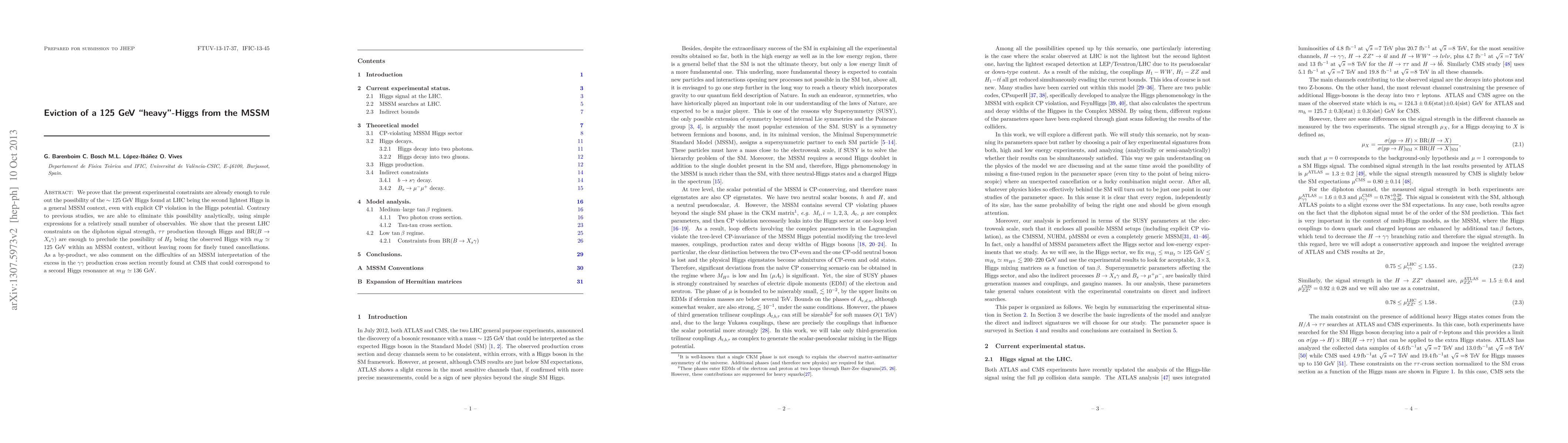 We prove that the present experimental constraints are already enough to rule out the possibility of the ~125 GeV Higgs found at LHC being the second lightest Higgs in a general MSSM context, even with explicit CP violation in the Higgs potential. Contrary to previous studies, we are able to eliminate this possibility analytically, using simple expressions for a relatively small number of observables. We show that the present LHC constraints on the diphoton signal strength, tau-tau production through Higgs and BR(B -> X_s gamma) are enough to preclude the possibility of H_2 being the observed Higgs with m_H~125 GeV within an MSSM context, without leaving room for finely tuned cancellations. As a by-product, we also comment on the difficulties of an MSSM interpretation of the excess in the gamma-gamma production cross section recently found at CMS that could correspond to a second Higgs resonance at m_H~136 GeV.