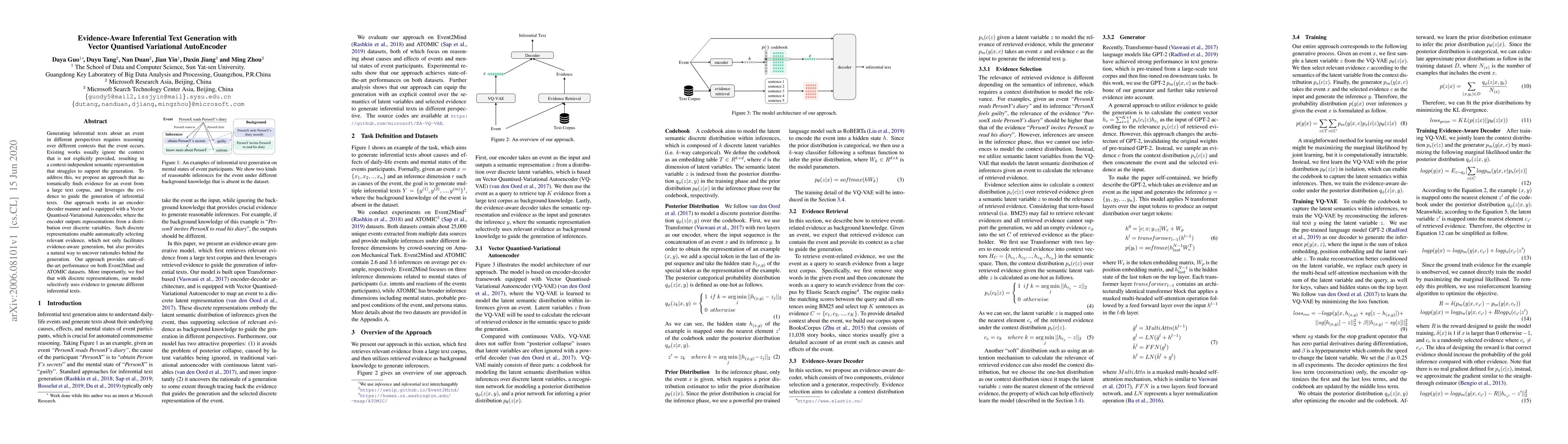 This paper proposes a context-aware text generation method using a Vector Quantised-Variational Autoencoder that finds and leverages evidence from large corpora to generate inferential texts. The discrete representations enable evidence selection and rationale disclosure, achieving state-of-the-art results on Event2Mind and ATOMIC datasets.