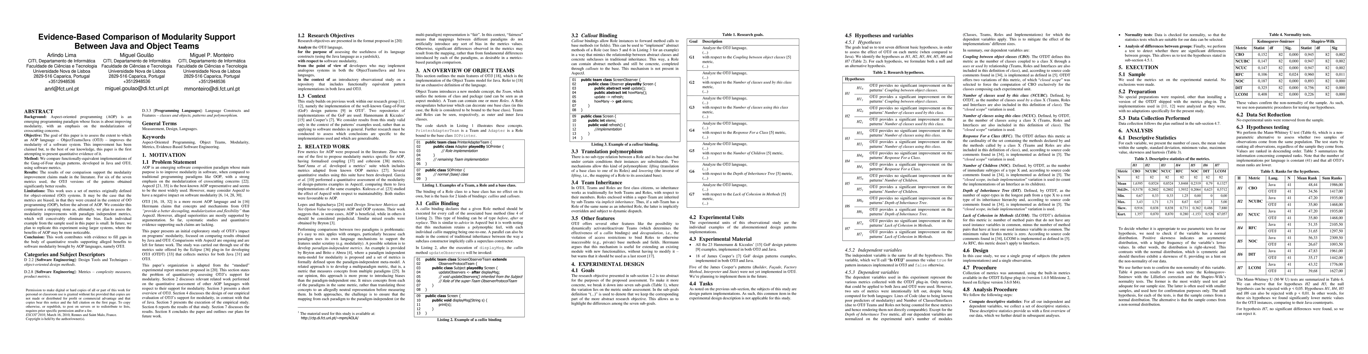 Background: Aspect-oriented programming (AOP) is an emerging programming paradigm whose focus is about improving modularity, with an emphasis on the modularization of crosscutting concerns. Objective: The goal of this paper is to assess the extent to which an AOP language -ObjectTeams/Java (OT/J) -improves the modularity of a software system. This improvement has been claimed but, to the best of our knowledge, this paper is the first attempting to present quantitative evidence of it. Method: We compare functionally-equivalent implementations of the Gang-of-Four design patterns, developed in Java and OT/J, using software metrics. Results: The results of our comparison support the modularity improvement claims made in the literature. For six of the seven metrics used, the OT/J versions of the patterns obtained significantly better results. Limitations: This work uses a set of metrics originally defined for object-oriented (OO) systems. It may be the case that the metrics are biased, in that they were created in the context of OO programming (OOP), before the advent of AOP. We consider this comparison a stepping stone as, ultimately, we plan to assess the modularity improvements with paradigm independent metrics, which will conceivably eliminate the bias. Each individual example from the sample used in this paper is small. In future, we plan to replicate this experiment using larger systems, where the benefits of AOP may be more noticeable. Conclusion: This work contributes with evidence to fill gaps in the body of quantitative results supporting alleged benefits to software modularity brought by AOP languages, namely OT/J.