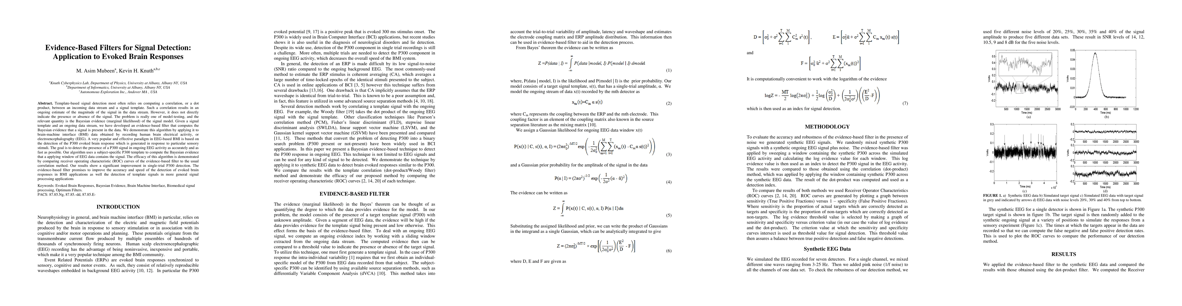 This paper introduces an evidence-based filter for detecting evoked brain responses in EEG data, specifically the P300 signal, by computing the Bayesian evidence of the signal model. The proposed method shows significant improvement over traditional correlation-based methods in detecting P300 signals, enhancing the accuracy and speed of brain-machine interface applications.