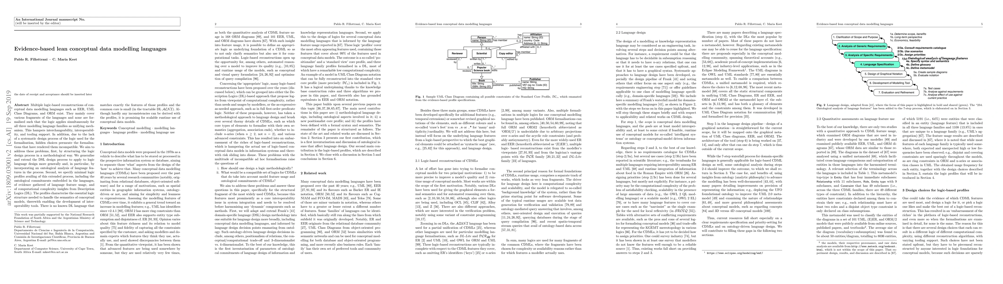 Multiple logic-based reconstructions of conceptual data modelling languages such as EER, UML Class Diagrams, and ORM exist. They mainly cover various fragments of the languages and none are formalised such that the logic applies simultaneously for all three modelling language families as unifying mechanism. This hampers interchangeability, interoperability, and tooling support. In addition, due to the lack of a systematic design process of the logic used for the formalisation, hidden choices permeate the formalisations that have rendered them incompatible. We aim to address these problems, first, by structuring the logic design process in a methodological way. We generalise and extend the DSL design process to apply to logic language design more generally and, in particular, by incorporating an ontological analysis of language features in the process. Second, we specify minimal logic profiles availing of this extended process, including the ontological commitments embedded in the languages, of evidence gathered of language feature usage, and of computational complexity insights from Description Logics (DL). The profiles characterise the essential logic structure needed to handle the semantics of conceptual models, therewith enabling the development of interoperability tools. There is no known DL language that matches exactly the features of those profiles and the common core is small (in the tractable DL $\mathcal{ALNI}$). Although hardly any inconsistencies can be derived with the profiles, it is promising for scalable runtime use of conceptual data models.