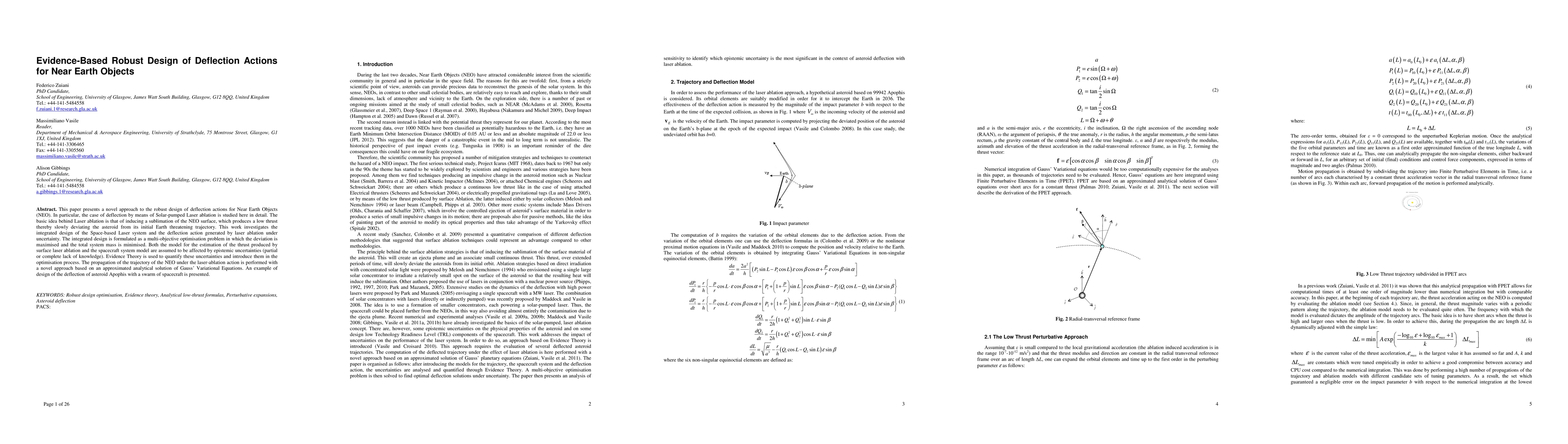 This paper presents a novel approach to the robust design of deflection actions for Near Earth Objects (NEO). In particular, the case of deflection by means of Solar-pumped Laser ablation is studied here in detail. The basic idea behind Laser ablation is that of inducing a sublimation of the NEO surface, which produces a low thrust thereby slowly deviating the asteroid from its initial Earth threatening trajectory. This work investigates the integrated design of the Space-based Laser system and the deflection action generated by laser ablation under uncertainty. The integrated design is formulated as a multi-objective optimisation problem in which the deviation is maximised and the total system mass is minimised. Both the model for the estimation of the thrust produced by surface laser ablation and the spacecraft system model are assumed to be affected by epistemic uncertainties (partial or complete lack of knowledge). Evidence Theory is used to quantify these uncertainties and introduce them in the optimisation process. The propagation of the trajectory of the NEO under the laser-ablation action is performed with a novel approach based on an approximated analytical solution of Gauss' Variational Equations. An example of design of the deflection of asteroid Apophis with a swarm of spacecraft is presented.