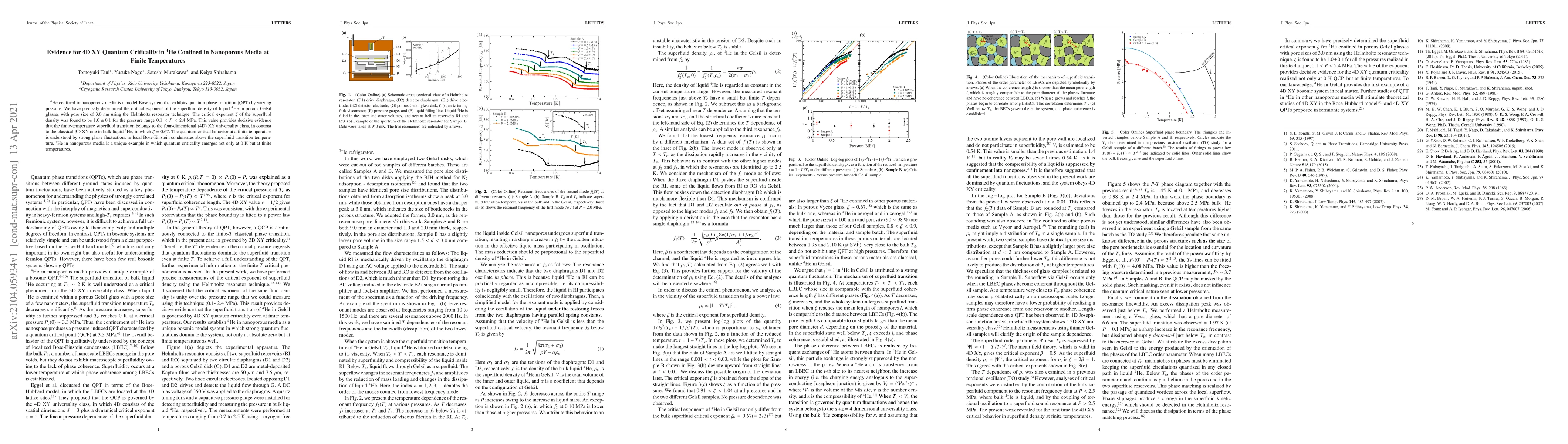 This study precisely determines the critical exponent of superfluid density in $^4$He confined in nanoporous media, revealing a value of 1.0 $\pm$ 0.1, which indicates 4D XY quantum criticality at finite temperatures, contrasting with the classical 3D XY behavior in bulk liquid $^4$He. This finding highlights the emergence of quantum criticality in local Bose-Einstein condensates above the superfluid transition temperature.