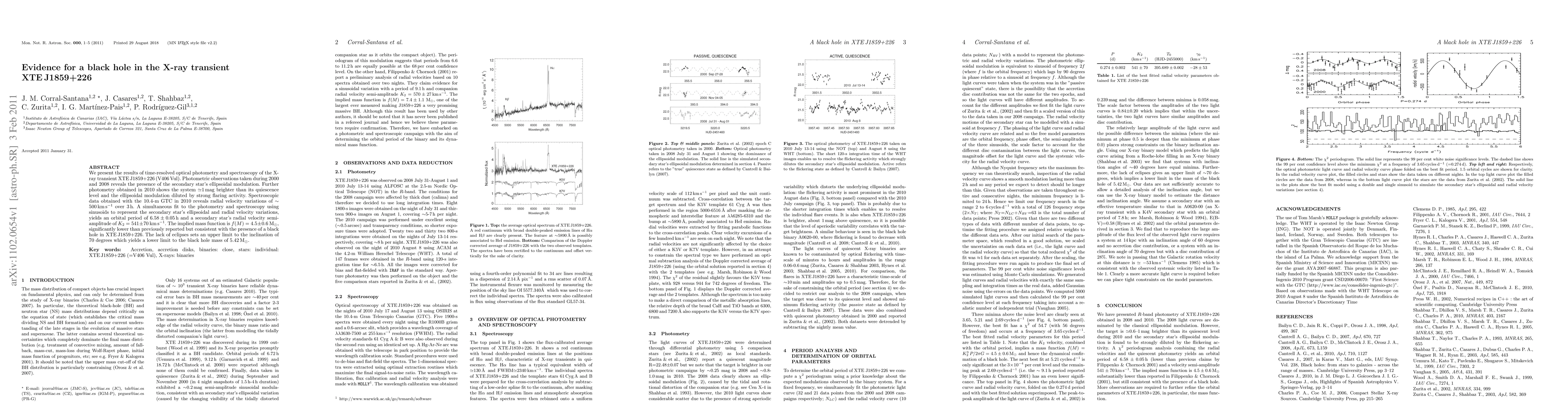 This paper presents evidence for a black hole in the X-ray transient XTE J1859+226 through time-resolved optical photometry and spectroscopy, revealing an orbital period of 6.58±0.05 h and a lower limit black hole mass of 5.42 Msun. The findings support the presence of a black hole given the mass function and lack of eclipses.
