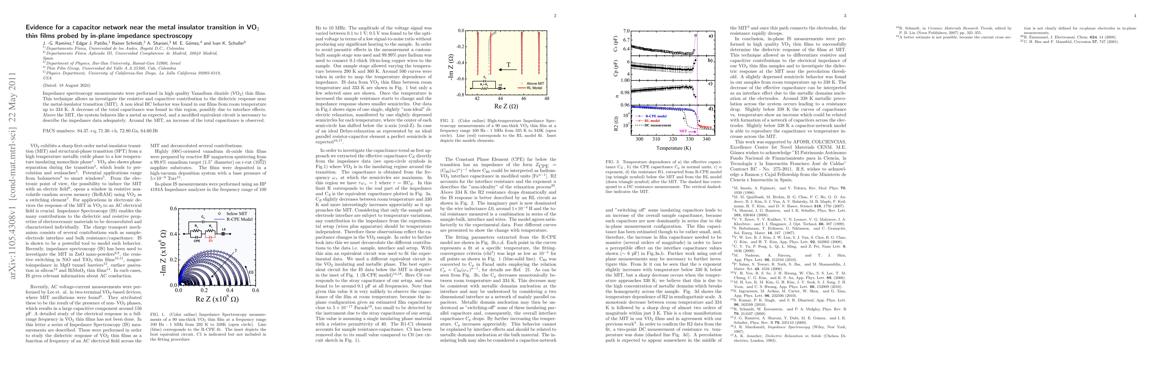 Researchers used impedance spectroscopy to study Vanadium dioxide thin films near their metal-insulator transition, finding a non-ideal RC behavior with a decrease in capacitance before the transition and an increase after it.