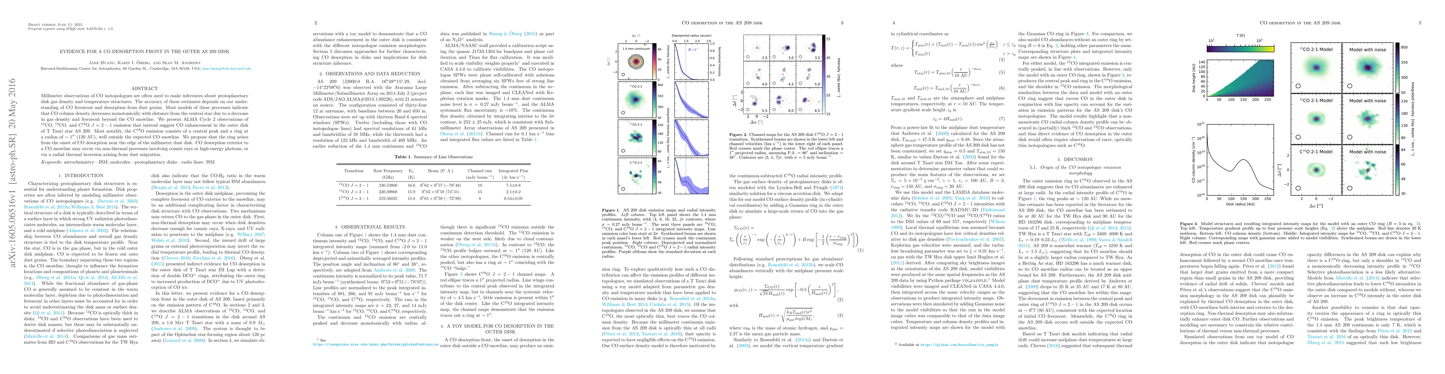 Millimeter observations of CO isotopologues are often used to make inferences about protoplanetary disk gas density and temperature structures. The accuracy of these estimates depends on our understanding of CO freezeout and desorption from dust grains. Most models of these processes indicate that CO column density decreases monotonically with distance from the central star due to a decrease in gas density and freezeout beyond the CO snowline. We present ALMA Cycle 2 observations of $^{12}$CO, $^{13}$CO, and C$^{18}$O $J=2-1$ emission that instead suggest CO enhancement in the outer disk of T Tauri star AS 209. Most notably, the C$^{18}$O emission consists of a central peak and a ring at a radius of $\sim1''$ (120 AU), well outside the expected CO snowline. We propose that the ring arises from the onset of CO desorption near the edge of the millimeter dust disk. CO desorption exterior to a CO snowline may occur via non-thermal processes involving cosmic rays or high-energy photons, or via a radial thermal inversion arising from dust migration.