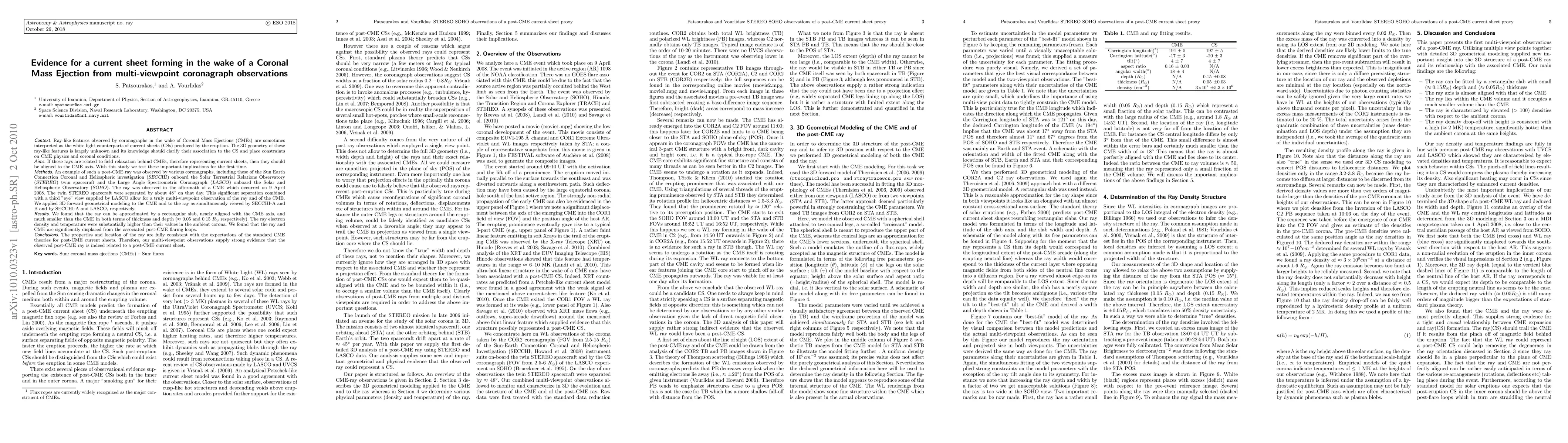 The study uses multi-viewpoint observations from STEREO and SOHO coronagraphs to model a post-CME ray as a current sheet. The results indicate that the ray, approximated as a thin, elongated slab, aligns with CME axis and matches standard CME theory expectations for post-CME current sheets.