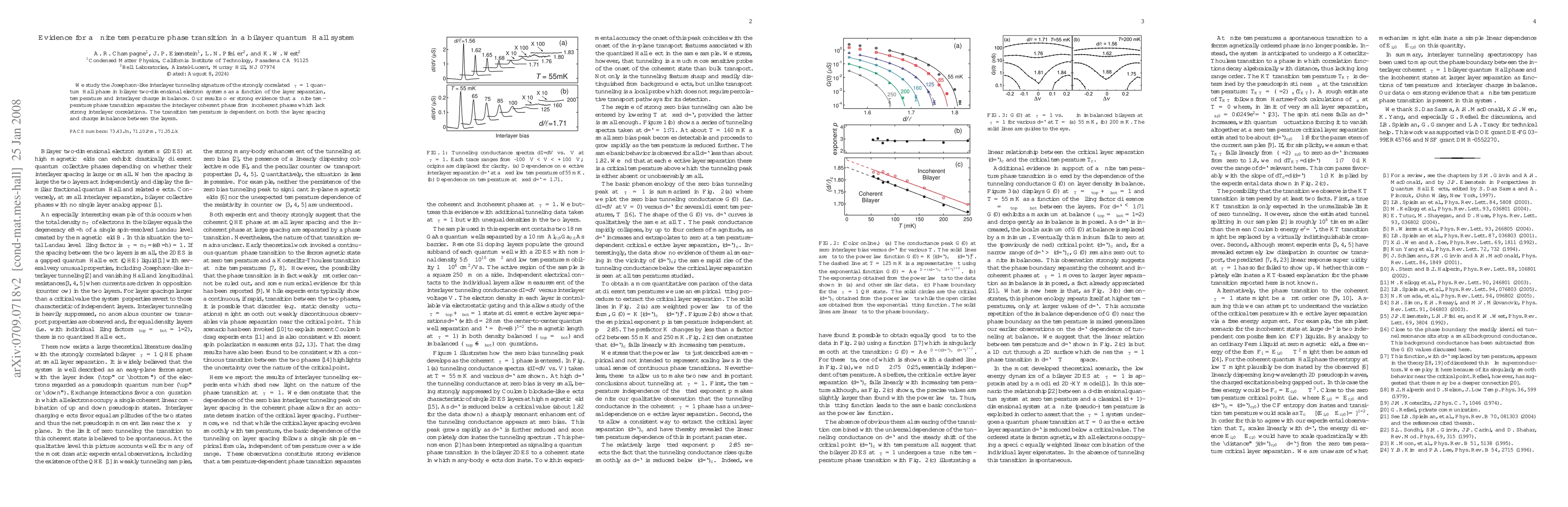 Summary: This study investigates the Josephson-like interlayer tunneling in a $\nu_T = 1$ quantum Hall bilayer system, revealing a finite temperature phase transition that distinguishes coherent interlayer phases from incoherent ones, with transition temperature influenced by layer separation and charge imbalance.