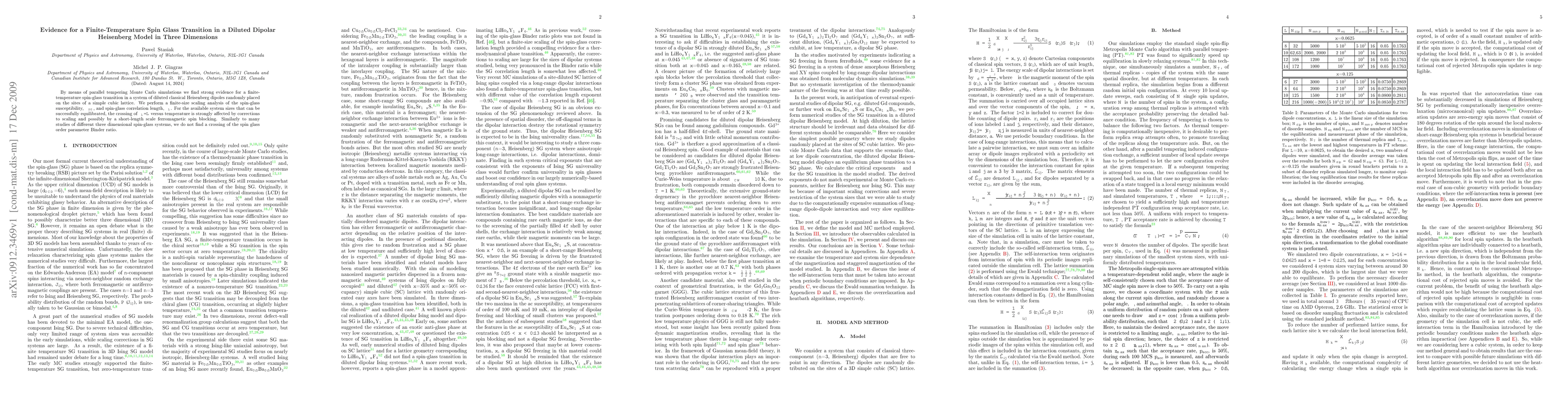 This study uses Monte Carlo simulations to demonstrate a finite-temperature spin-glass transition in a three-dimensional diluted dipolar Heisenberg model. The analysis reveals significant effects of scaling corrections and potential ferromagnetic spin blocking on the spin-glass correlation length, but no crossing of the spin-glass order parameter Binder ratio.