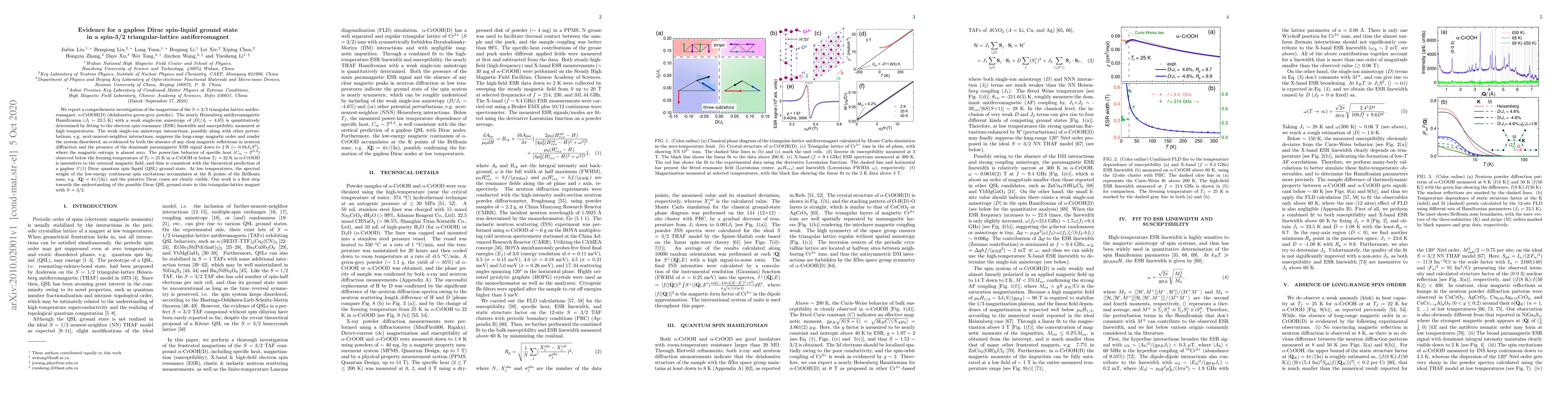 This research investigates the magnetic properties of the spin-3/2 triangular-lattice antiferromagnet $\alpha$-CrOOH(D), revealing a gapless Dirac spin-liquid ground state. The study finds evidence of a disordered state without long-range order, consistent with a theoretical prediction of a gapless U(1) Dirac quantum spin liquid.