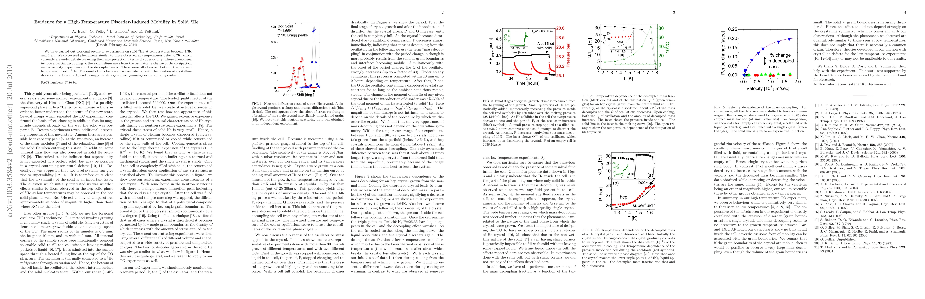 This study reveals high-temperature disorder-induced mobility in solid $^4$He, observed via torsional oscillator experiments between 1.3K and 1.9K, showing phenomena akin to those debated in supersolidity at lower temperatures, including partial decoupling, dissipation changes, and velocity-dependent mass. This behavior coincides with crystalline disorder onset, independent of phase or temperature.