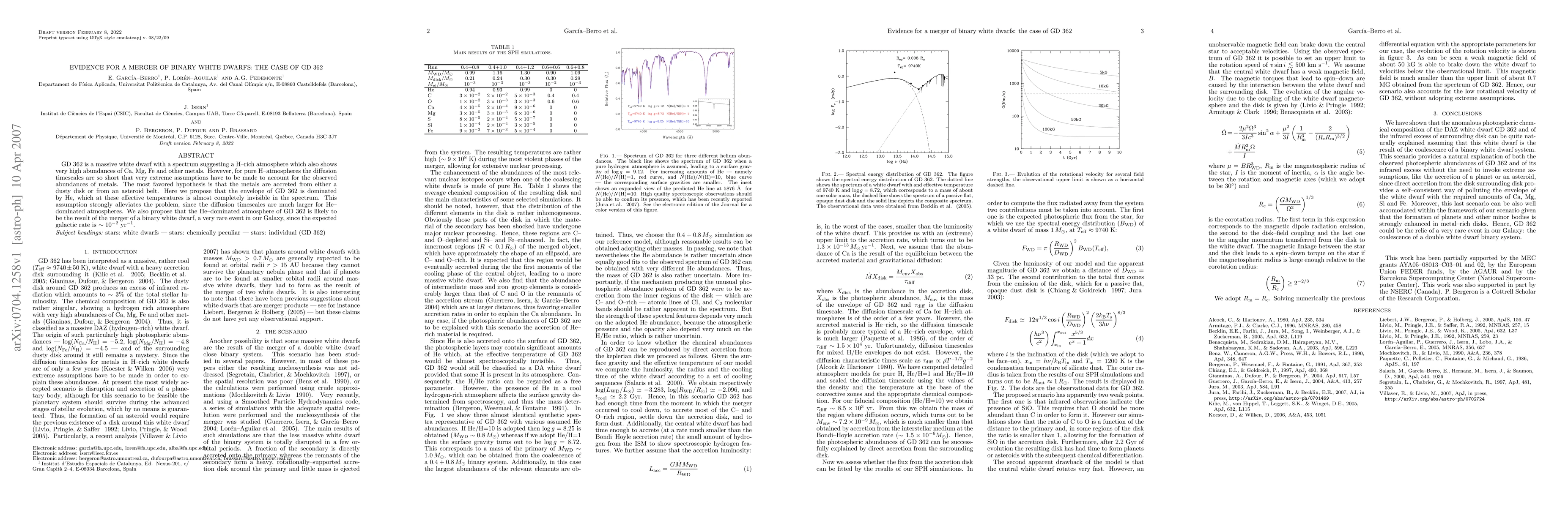 Summary: GD 362's spectrum indicates a H-rich atmosphere with high metal abundances, suggesting a merger of binary white dwarfs. The He-dominated envelope, invisible in the spectrum, explains the observed metals without extreme assumptions.