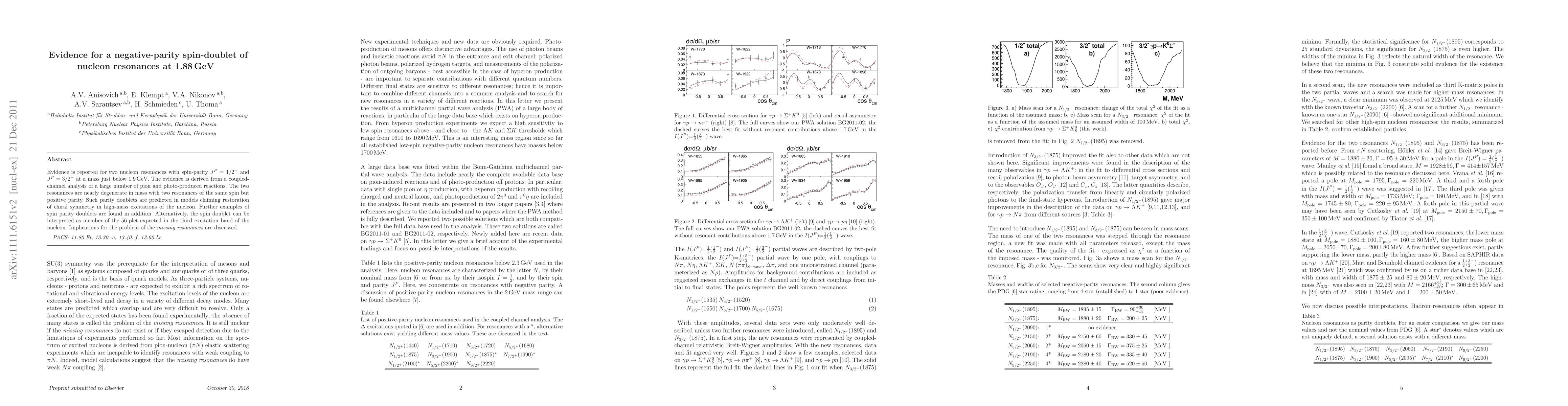 Researchers have found two nucleon resonances with negative parity at 1.88 GeV, nearly degenerate in mass, which could help explain the problem of missing resonances in high-energy physics.