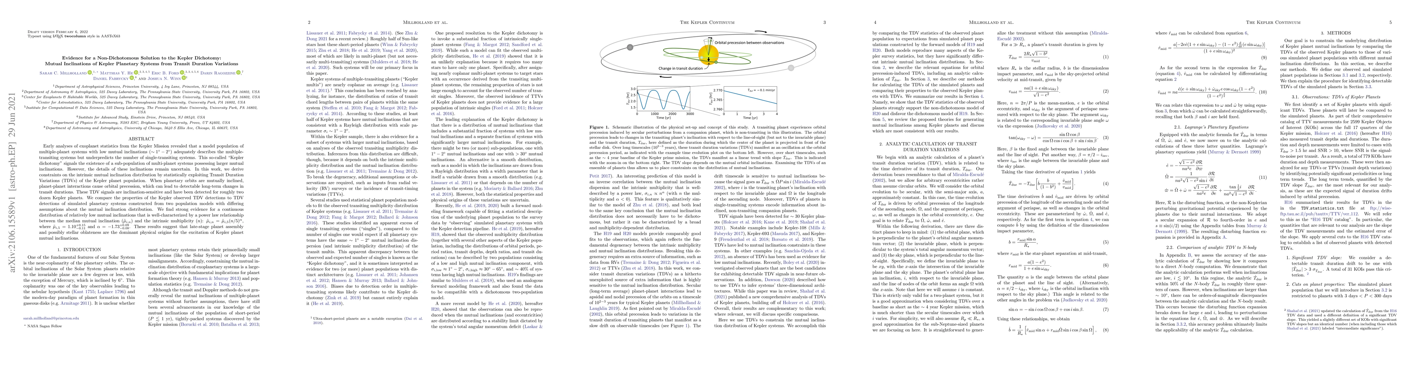 This research challenges the "Kepler dichotomy" by demonstrating that planetary systems exhibit a continuous distribution of mutual inclinations rather than a binary split. Using Transit Duration Variations, it finds a power-law relationship between mutual inclinations and planetary multiplicity, suggesting late-stage planet assembly and stellar oblateness as primary inclination drivers.