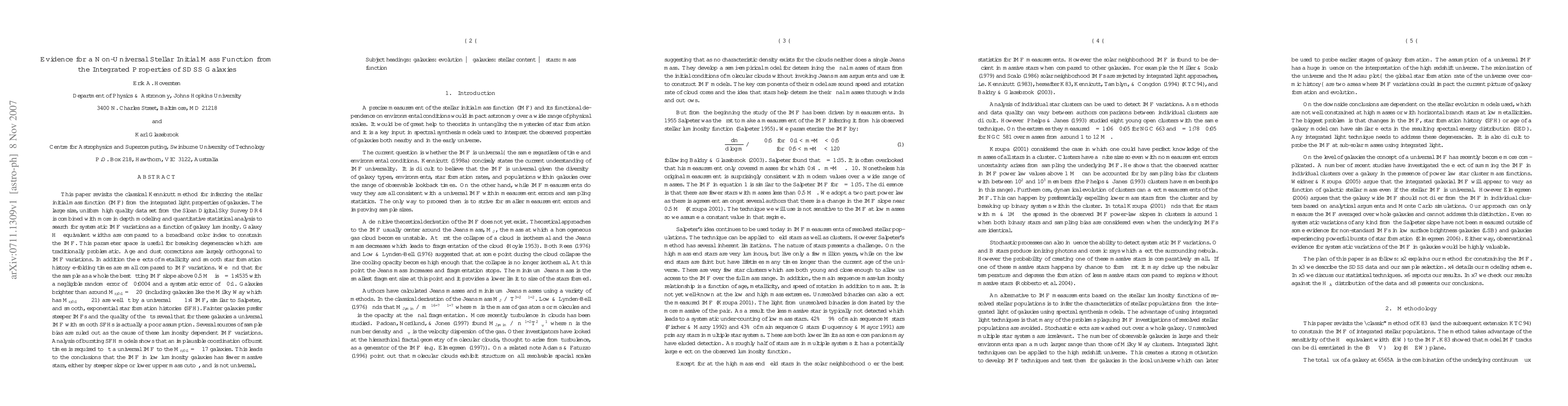 This study uses the Sloan Digital Sky Survey data to infer variations in the stellar initial mass function (IMF) across galaxies of different luminosities, finding that brighter galaxies follow a nearly universal IMF, while fainter galaxies exhibit steeper IMFs. The analysis rules out sample biases and suggests that the IMF is not universal, particularly in low luminosity galaxies.