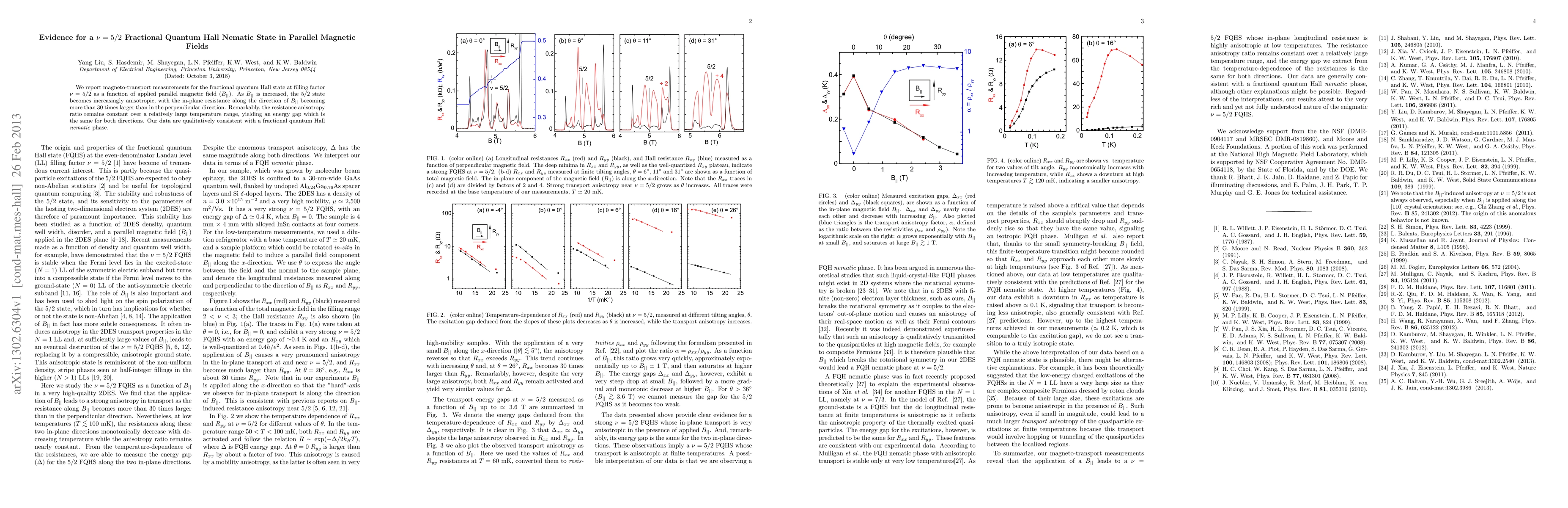 This study reports magneto-transport measurements revealing anisotropic behavior in the $\nu=5/2$ fractional quantum Hall state under parallel magnetic fields, indicating a nematic phase. The resistance along the magnetic field direction increases significantly compared to the perpendicular direction, maintaining a constant anisotropy ratio over a broad temperature range.