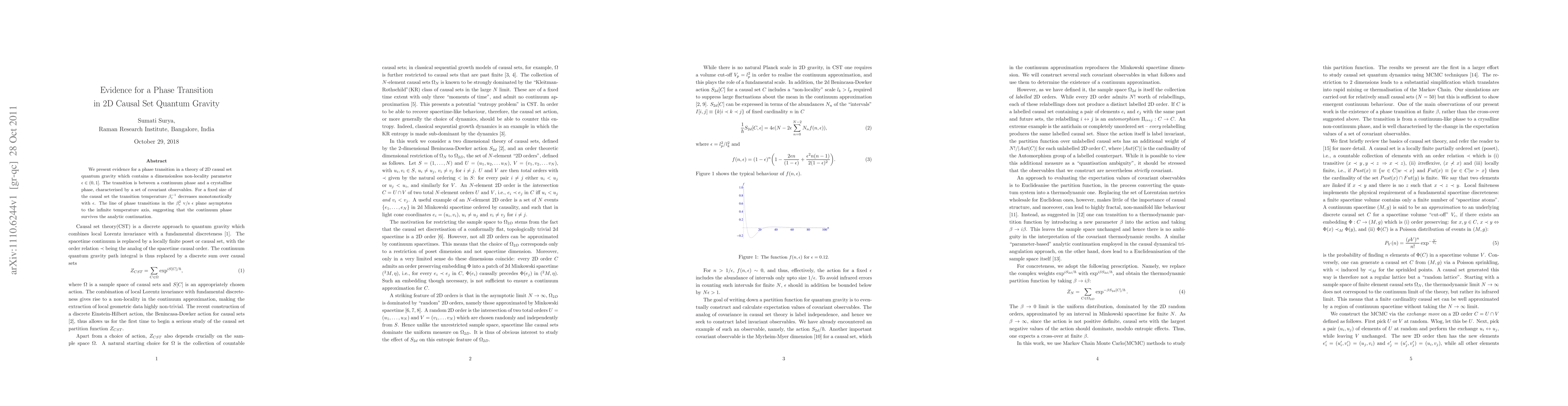This paper provides evidence for a phase transition in 2D causal set quantum gravity, showing a shift from a continuum phase to a crystalline phase as a non-locality parameter varies. The transition temperature decreases with the parameter, and the phase line asymptotes to the infinite temperature axis, indicating the continuum phase's persistence.