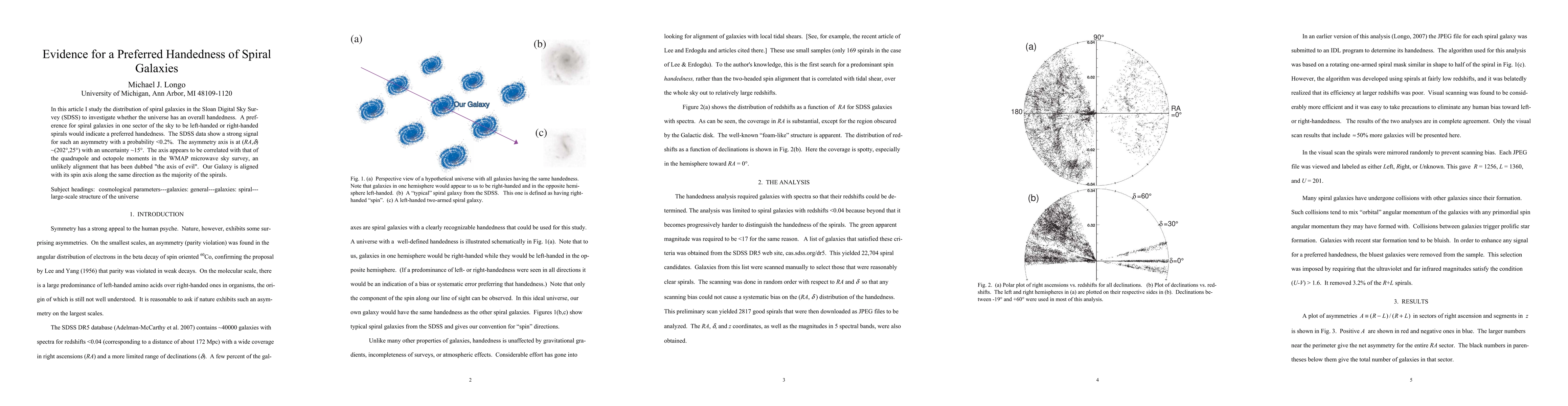 This study finds a strong asymmetry in the handedness of spiral galaxies in the SDSS, suggesting a preferred handedness in the universe with a probability <0.2%. The asymmetry correlates with the "axis of evil" from the WMAP survey, raising intriguing questions about cosmic handedness.