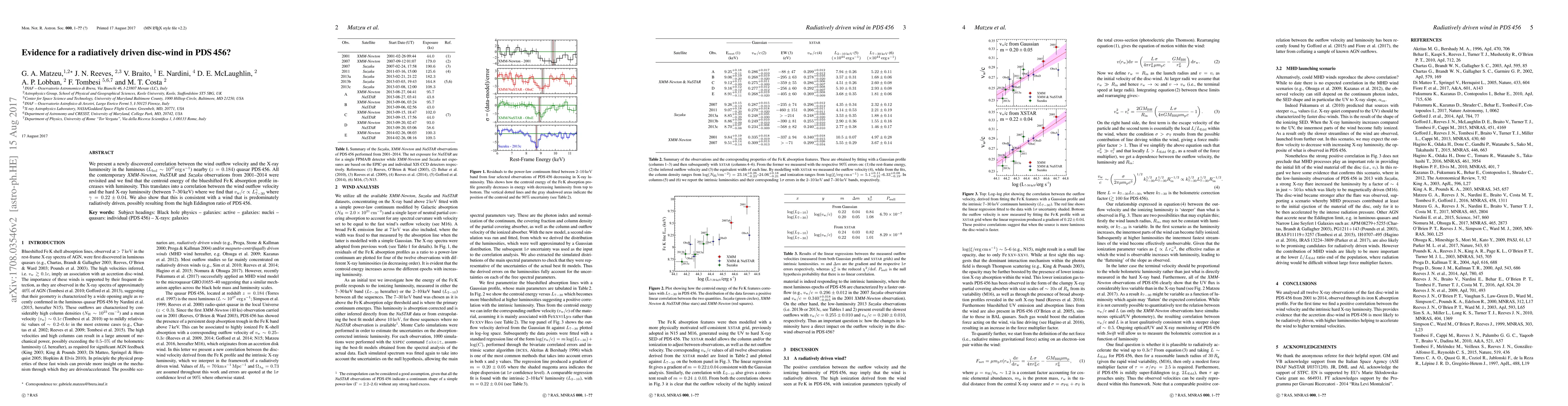 We present a newly discovered correlation between the wind outflow velocity and the X-ray luminosity in the luminous ($L_{\rm bol}\sim10^{47}\,\rm erg\,s^{-1}$) nearby ($z=0.184$) quasar PDS\,456. All the contemporary XMM-Newton, NuSTAR and Suzaku observations from 2001--2014 were revisited and we find that the centroid energy of the blueshifted Fe\,K absorption profile increases with luminosity. This translates into a correlation between the wind outflow velocity and the hard X-ray luminosity (between 7--30\,keV) where we find that $v_{\rm w}/c \propto L_{7-30}^{\gamma}$ where $\gamma=0.22\pm0.04$. We also show that this is consistent with a wind that is predominately radiatively driven, possibly resulting from the high Eddington ratio of PDS\,456.