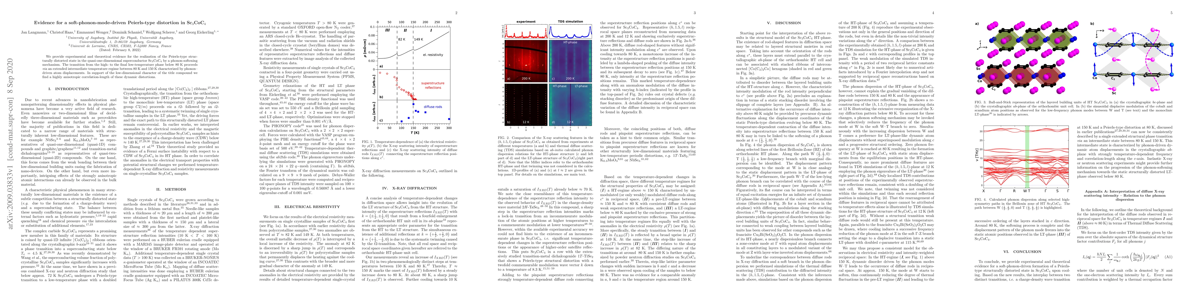 The research presents evidence for a Peierls-type structural distortion in Sc_3CoC_4, a quasi-one-dimensional superconductor, driven by a soft phonon mode. The transition from high to low temperature phase occurs via an intermediate regime (80K-150K) with phonon-induced atomic displacements, supporting the compound's low-dimensional character through highly anisotropic correlation-length of dynamic distortions.