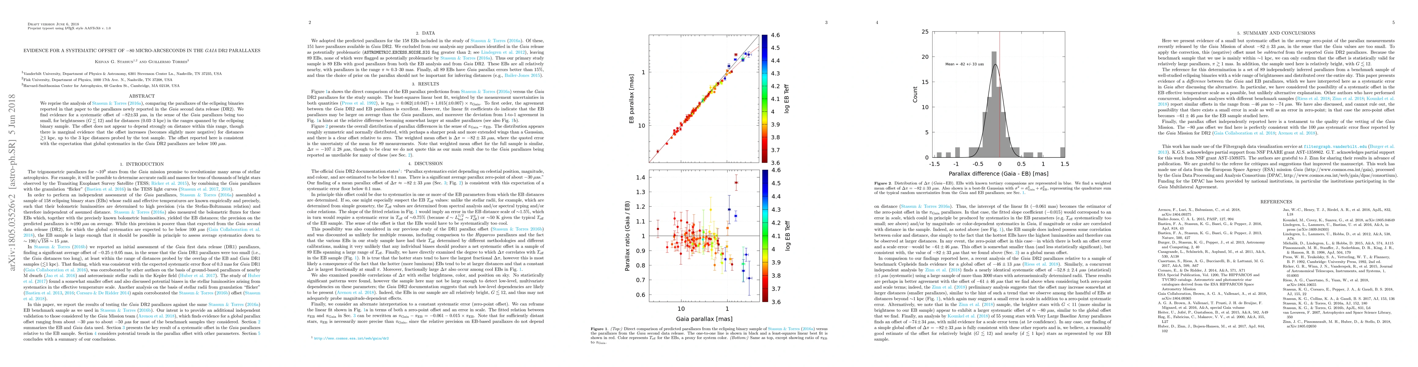 This paper finds a systematic offset of $-82 \pm 33$ micro-arcseconds in Gaia DR2 parallaxes for bright stars ($G \lesssim 12$) and distances (0.03--3 kpc), suggesting Gaia parallaxes may be underestimated. The offset does not strongly depend on distance but may slightly increase for distances above 1 kpc.
