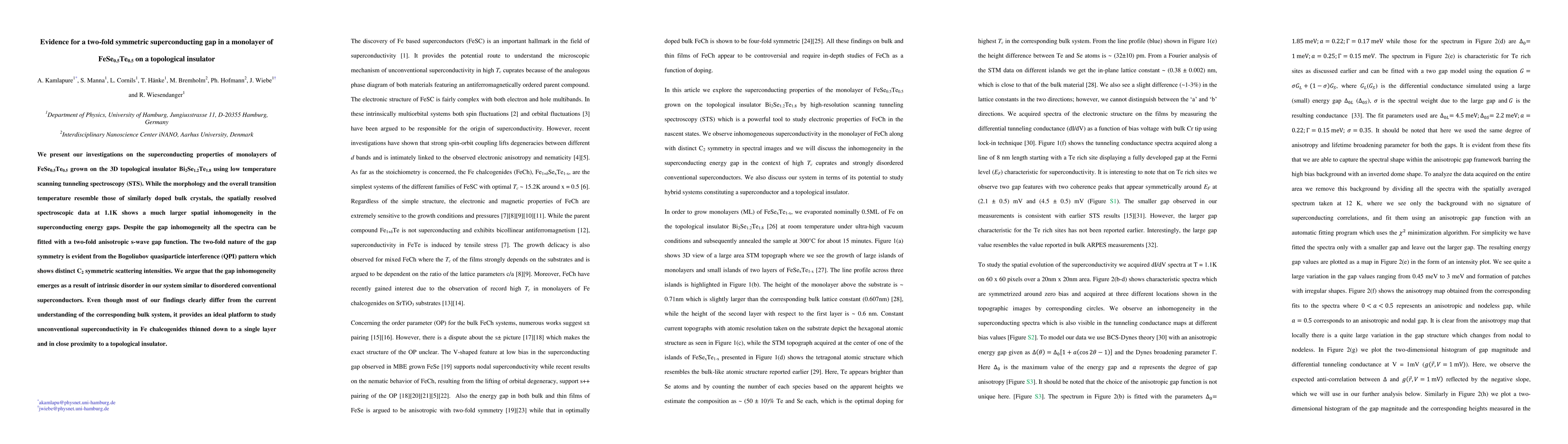 Researchers discovered a two-fold symmetric superconducting gap in FeSe0.5Te0.5 monolayers on topological insulators, showing distinct spatial inhomogeneity and C2 symmetry, challenging current understanding of the corresponding bulk system.