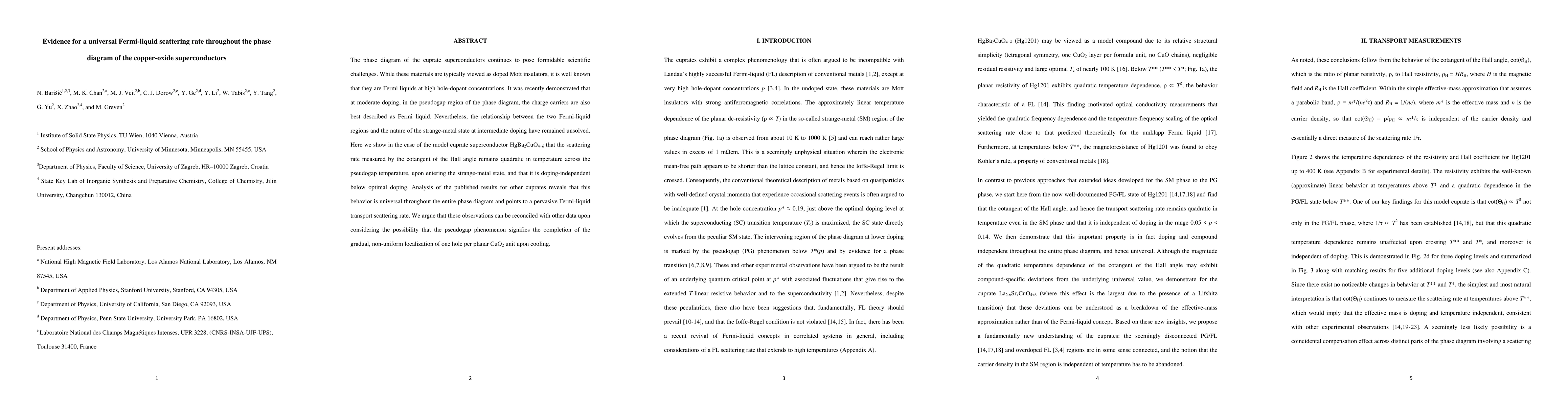 Researchers found that cuprate superconductors exhibit a universal Fermi-liquid scattering rate across their phase diagram, indicating a constant transport mechanism regardless of doping level or temperature.