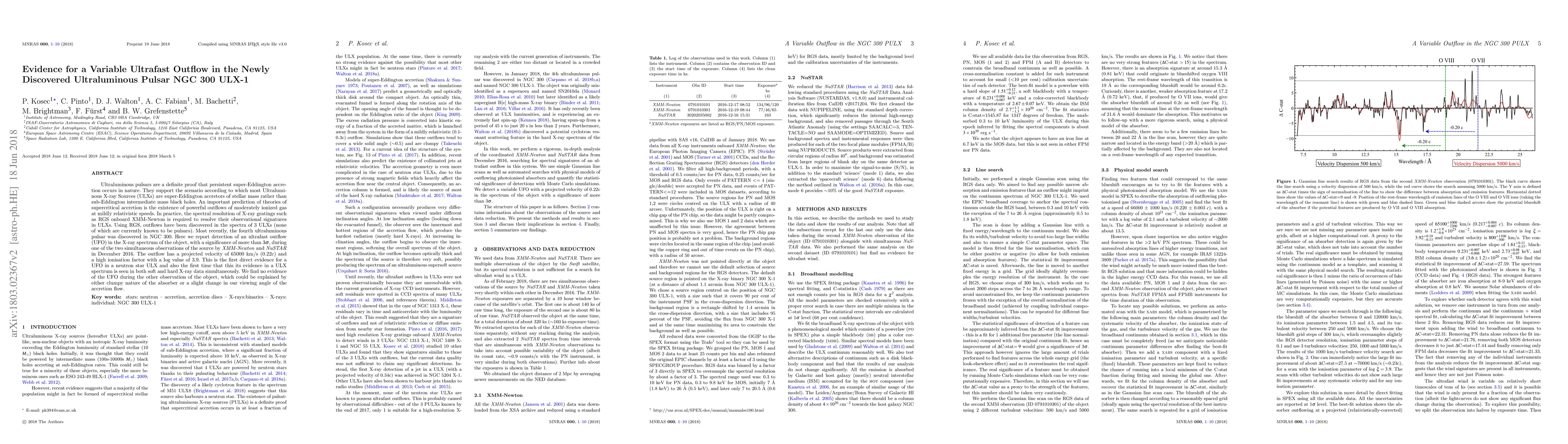 Researchers detected an ultrafast outflow in the X-ray spectrum of NGC 300 ULX-1, a newly discovered ultraluminous pulsar, with a velocity of 65,000 km/s, providing direct evidence for variable ultrafast outflows in neutron star ULXs.