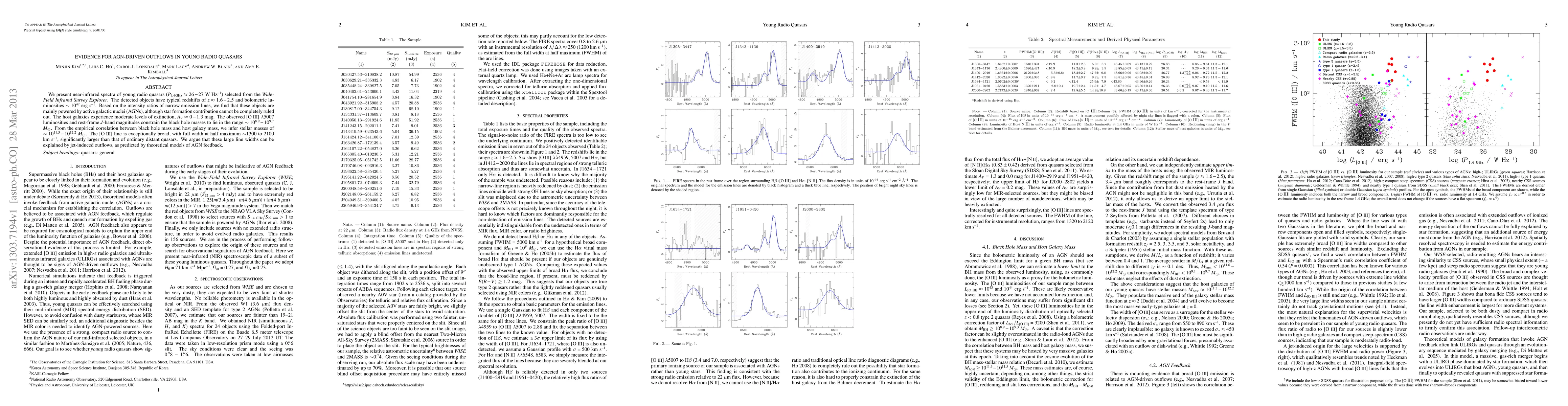 Researchers found that young radio quasars are powered mainly by active galactic nuclei (AGNs) with moderate levels of extinction, and their broad emission lines can be explained by jet-induced outflows.