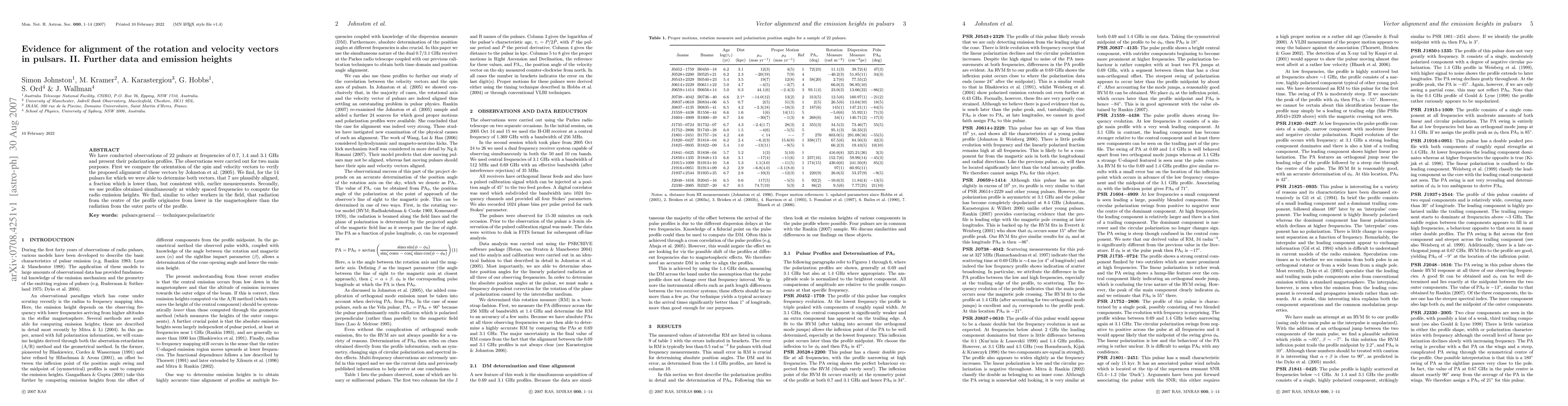 This paper reports on observations of 22 pulsars to verify the alignment of spin and velocity vectors, finding that 7 of 14 pulsars show plausible alignment. It also estimates radio emission heights, confirming that central radiation originates from lower magnetospheric regions compared to outer parts.