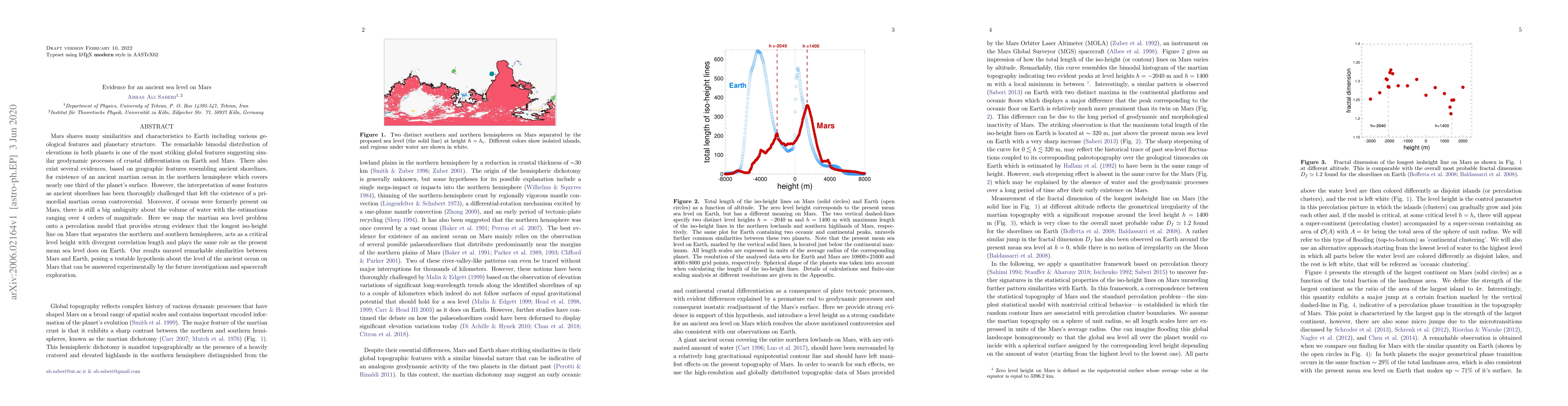 This paper provides strong evidence for an ancient sea level on Mars by mapping geological features onto a percolation model, suggesting the longest iso-height line acts as a critical level similar to Earth's mean sea level, supporting the hypothesis of a primordial martian ocean. Future spacecraft exploration can test this hypothesis and resolve the ambiguity regarding the volume of water in ancient Martian oceans.