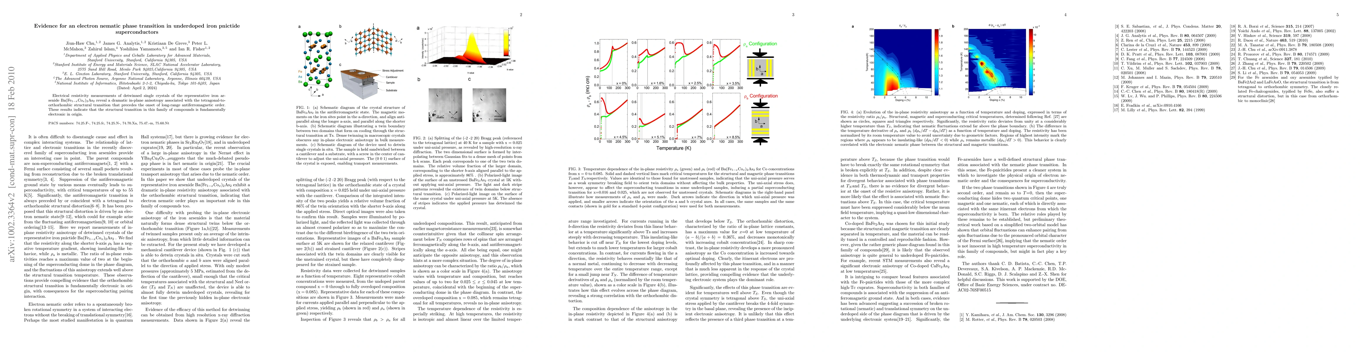 This study finds a dramatic in-plane electrical resistivity anisotropy in underdoped iron arsenide superconductors, suggesting an electron nematic phase transition linked to the tetragonal-to-orthorhombic structural change preceding antiferromagnetic order. The results imply the structural transition is driven by electronic effects.